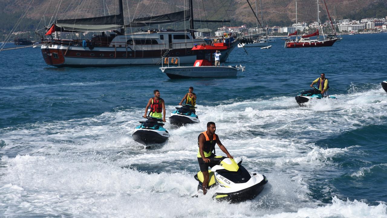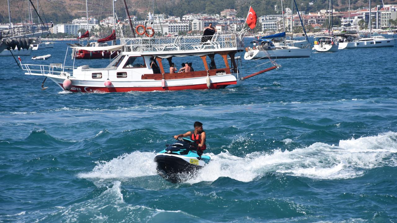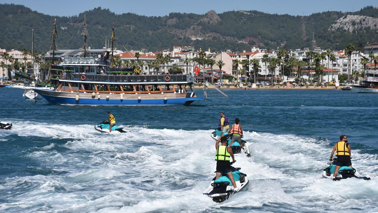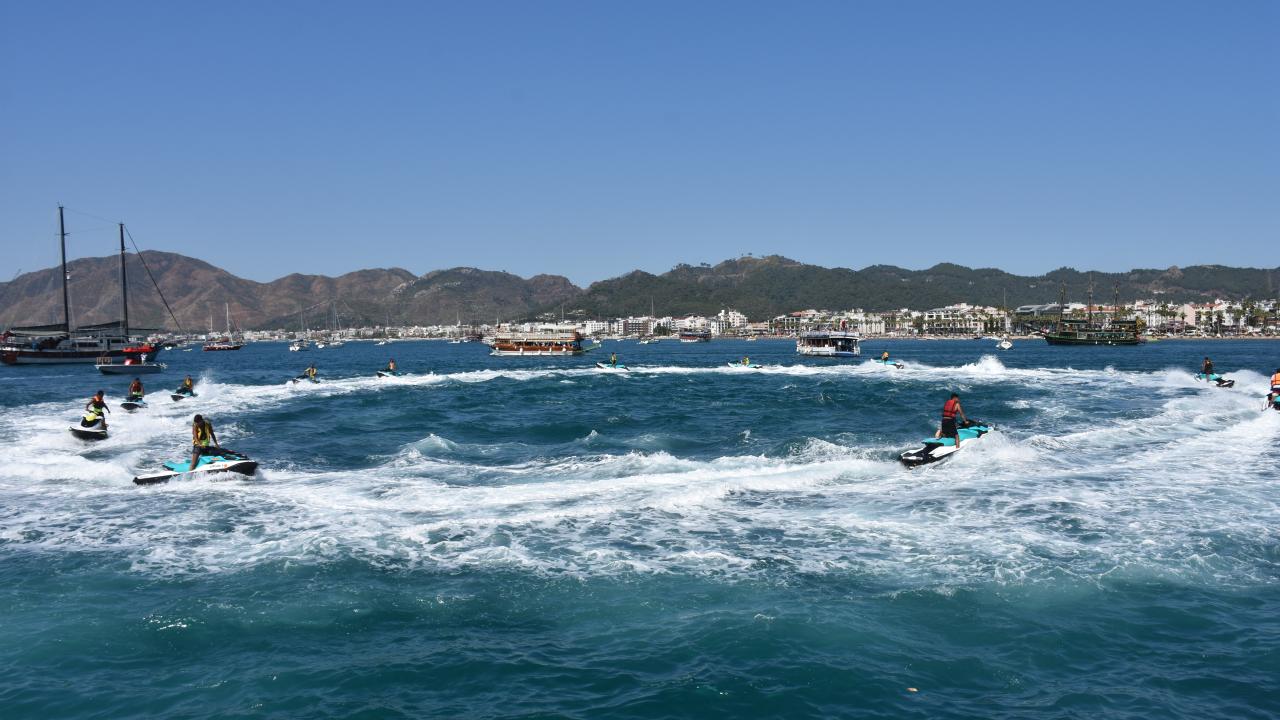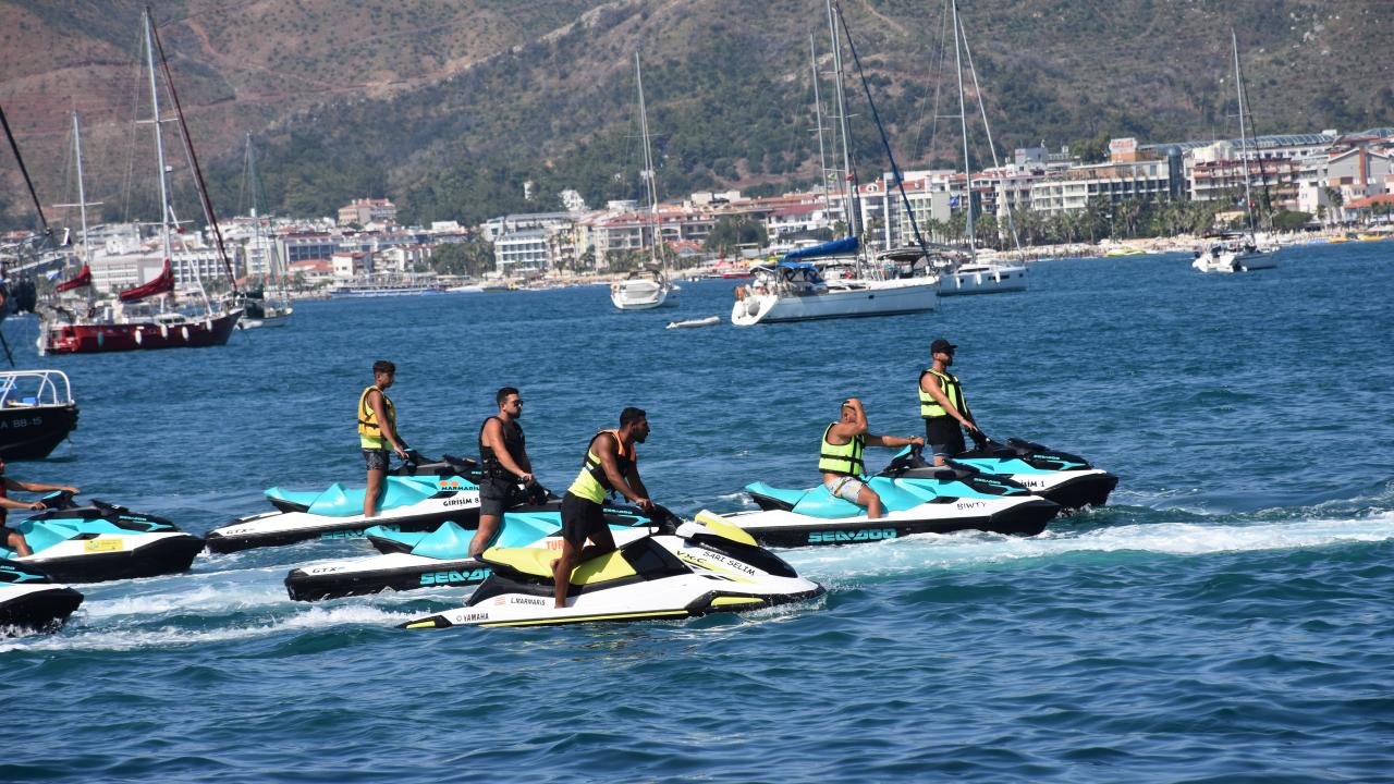 Sahil Güvenlik Komutanlığı botları da denizdeki kutlamalara eşlik etti, su sporları merkezleri jet ski gösterisi sundu.