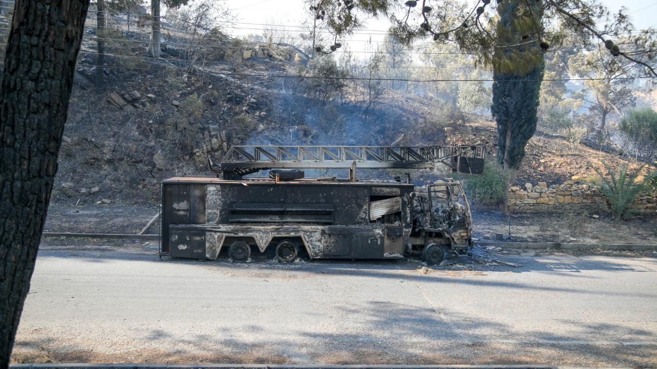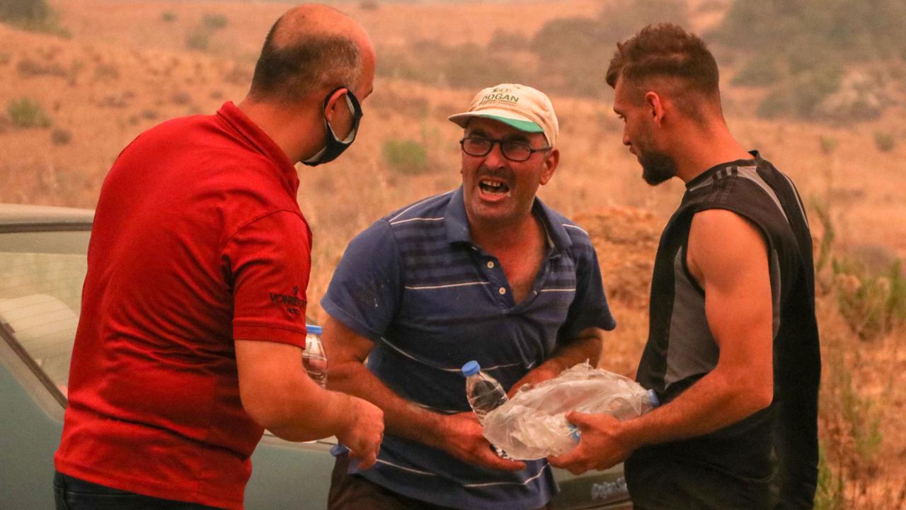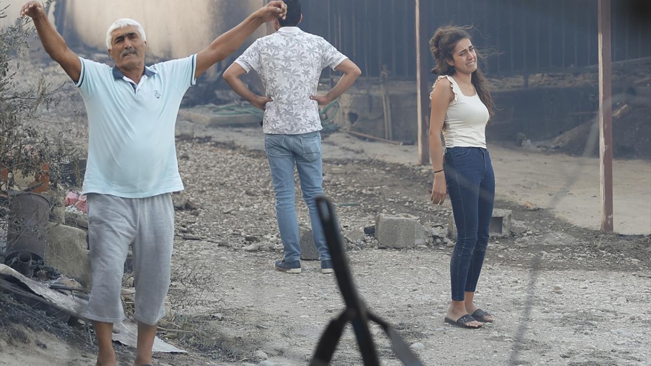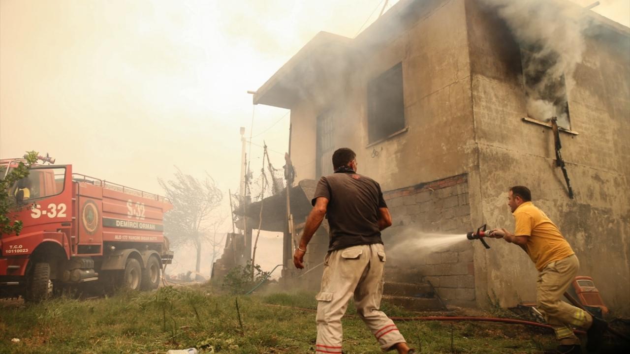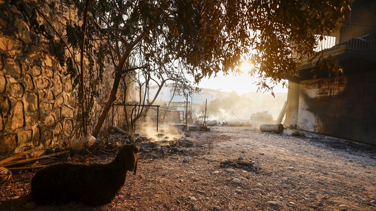 Vatandaşlar bir yandan evlerine ulaşan yangını bahçe hortumlarıyla söndürmeye çalışırken, bir yandan da hayvanlarını bölgeden uzaklaştırıyor.