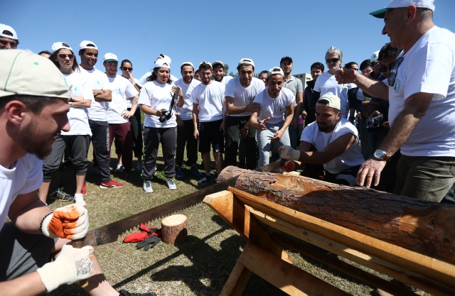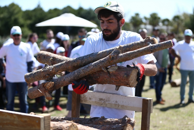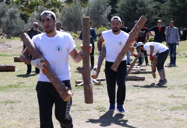 Antalya'da düzenlenen 1. Orman Oyunları Olimpiyatı'nda, tomruk yuvarlama, odun istif etme, kozalak toplama ve tomruk kesme gibi kategorilerde yarışan öğrencilerin mücadelesi renkli görüntülere sahne oldu.