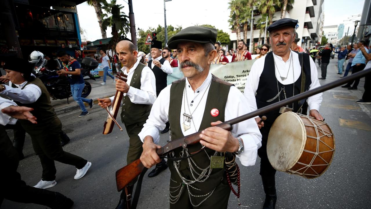 Festivale katılan ülkelerden gelen Yörük ve Türkmenlerin develer üzerinde geleneksel kıyafetlerle yer aldığı Yörük göçüne Antalyalılar ve turistler ilgi gösterdi.