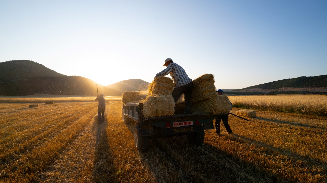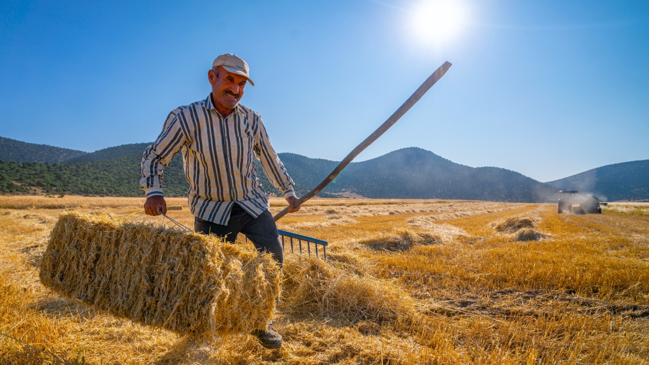 Aşırı sıcaklar altında yoğun mesai harcayan çiftçiler bu yılki rekolteden memnun bir şekilde, buğday tarımının son aşaması olan, tanesinden ayrılan sapların balya haline getirilmesi ve toplanmasına geçti.