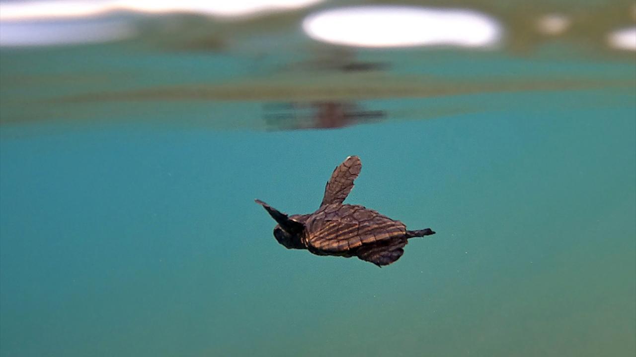 Ceylan, ayrıca su altından da kaplumbağa yavrularının hiç durmadan 1-2 gün boyunca açığa yüzdükleri periyodu kayıt altına aldı.