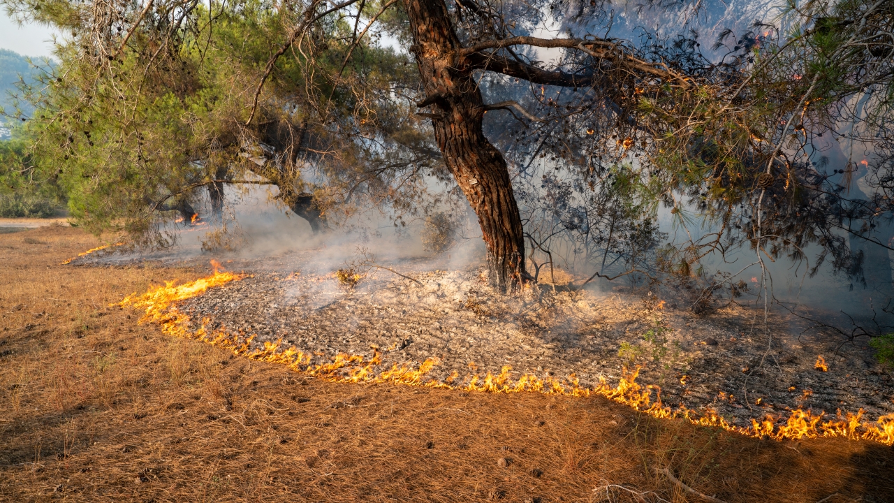 Lara bölgesindeki plaja yakın ormanlık alanda henüz bilinmeyen nedenle yangın çıktı.