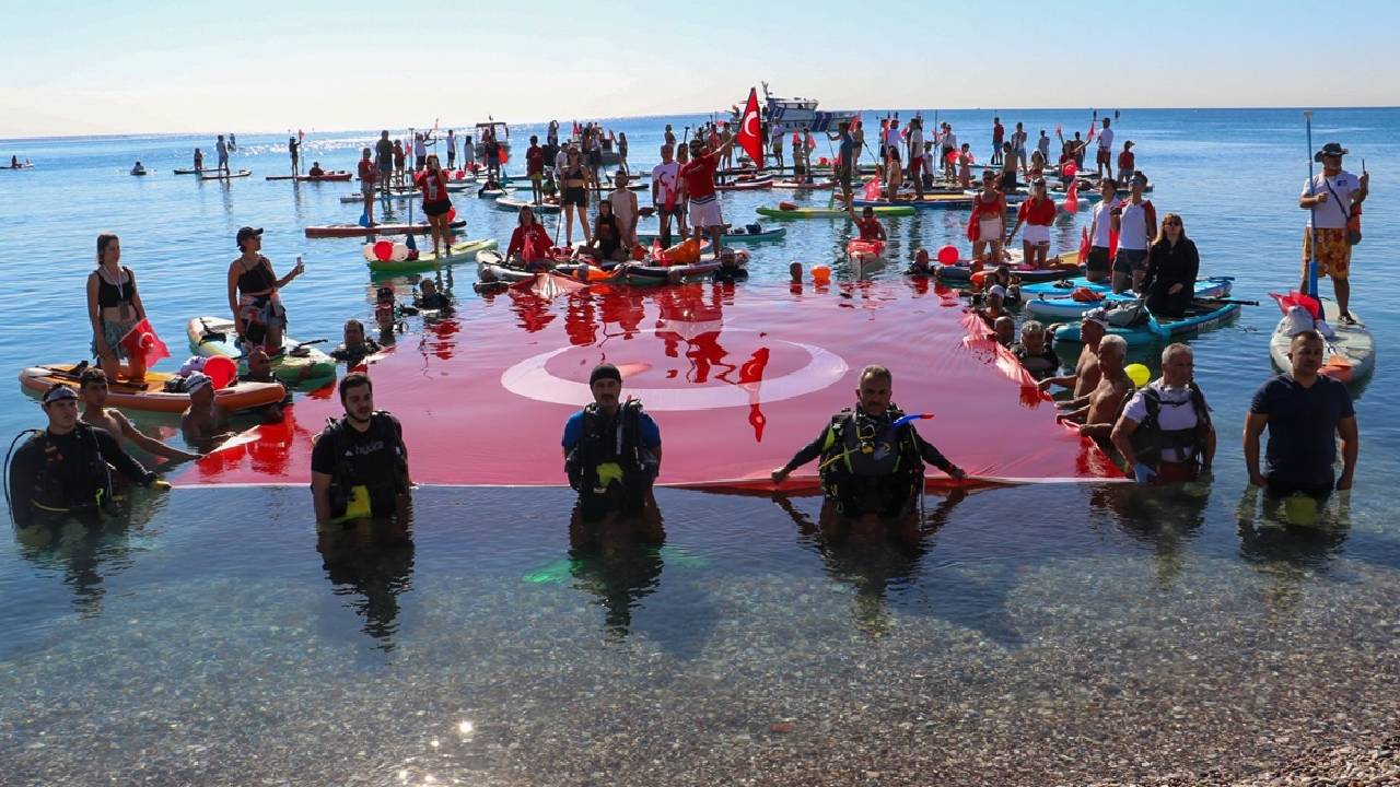 Antalya'da "Cumhuriyet'in 101. yılı" denizde Türk bayrağı açılarak kutlandı