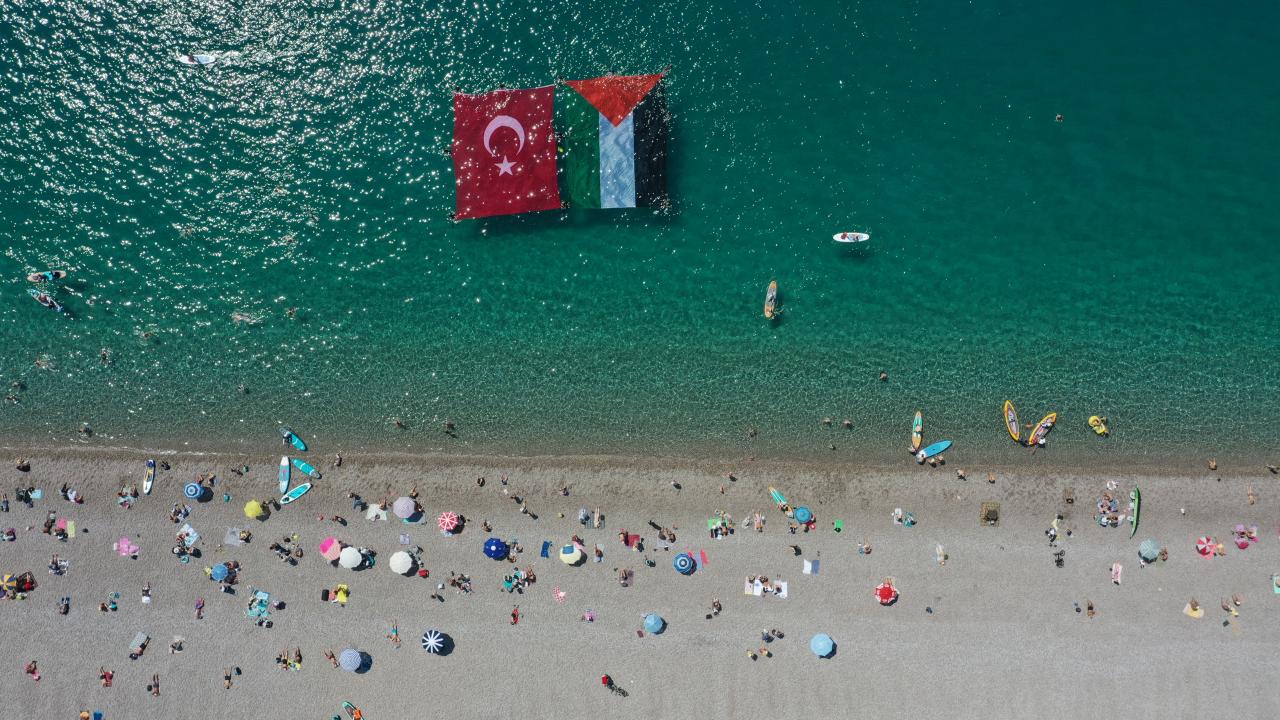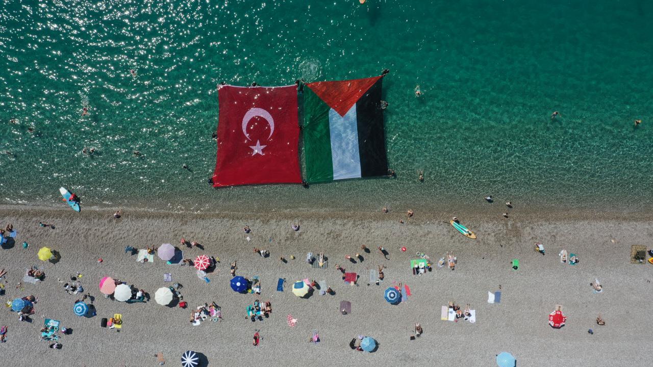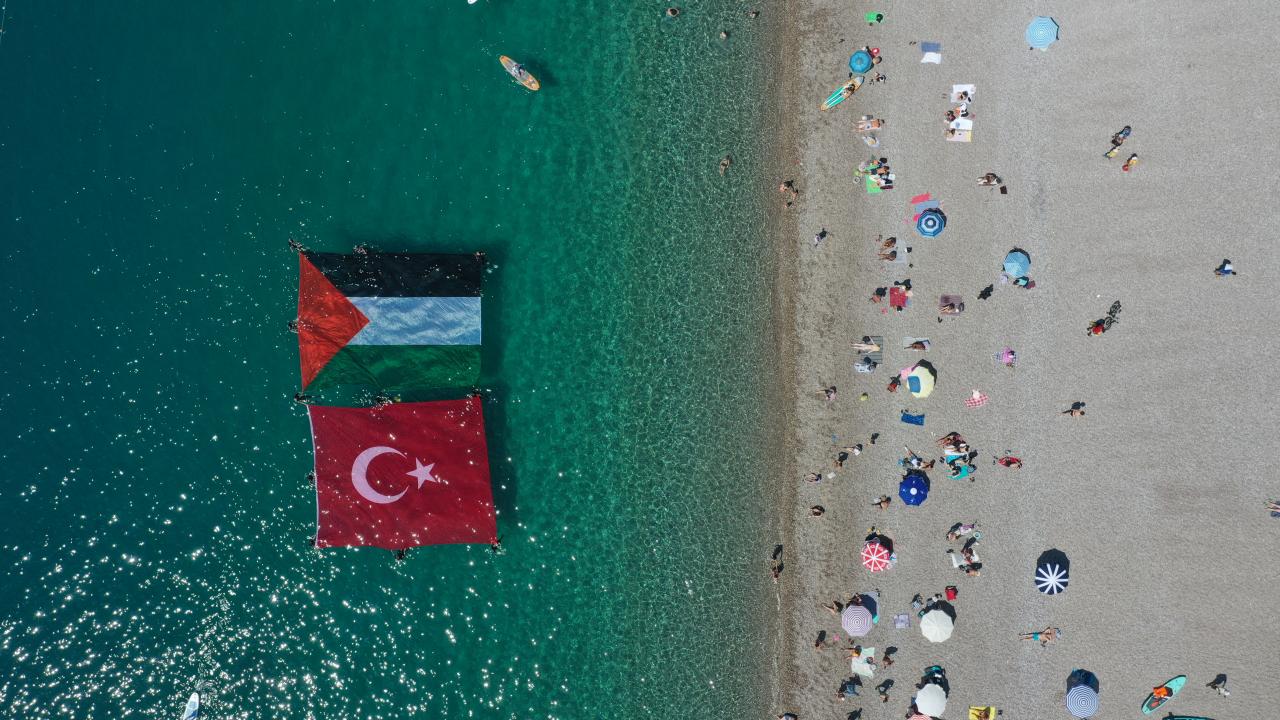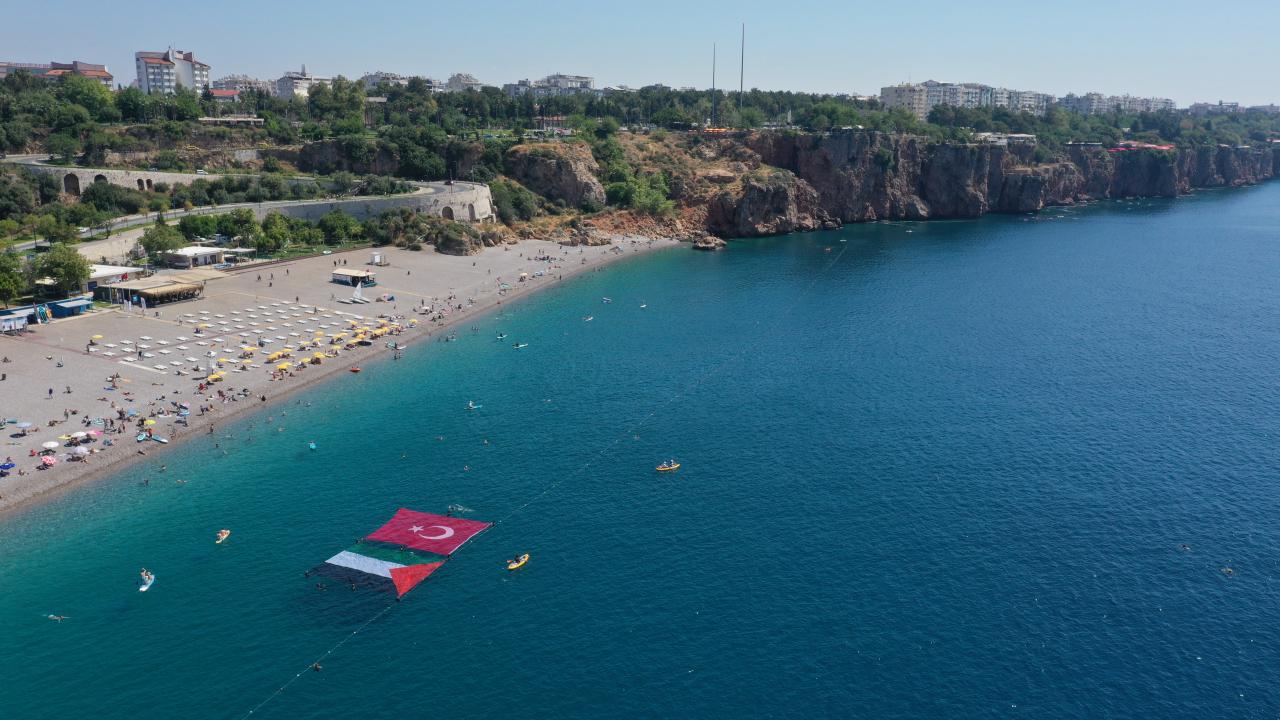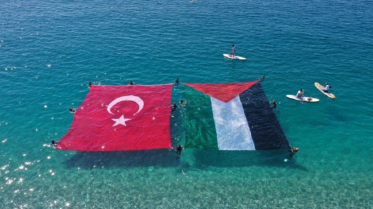 Türk halkının kalbinin her zaman Filistin halkıyla olduğunu ifade eden Uygur, "Durmayan, ara vermeyen Gazze`deki saldırıları protesto etmek, oradaki direnişi desteklemek ve turistlere de farkındalık oluşturmak amacıyla bayrakları denizde açtık." dedi.