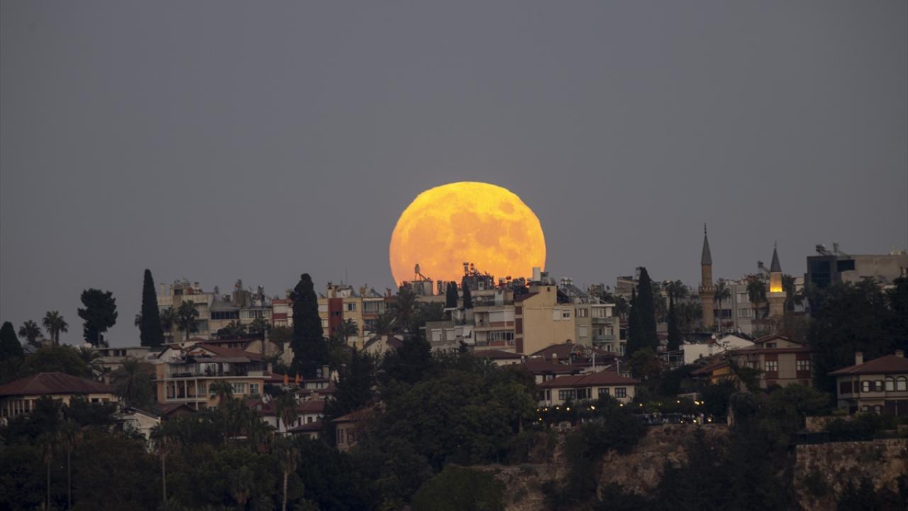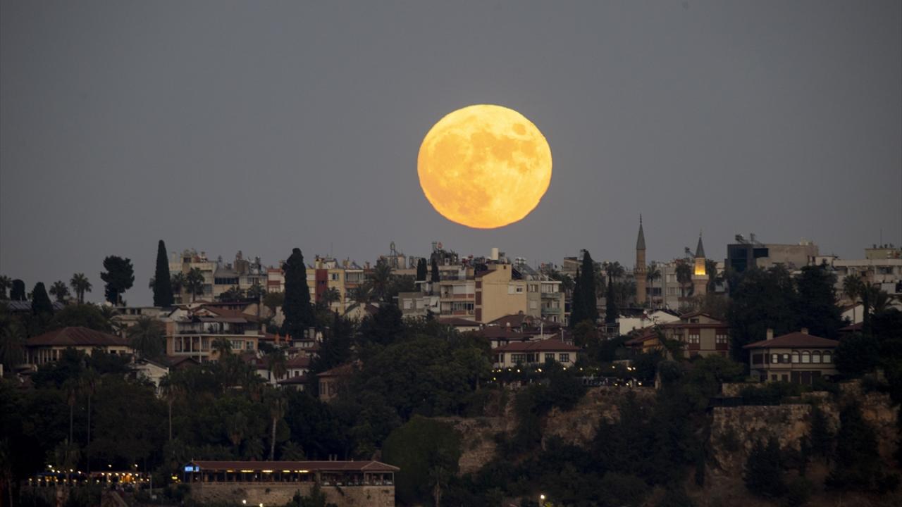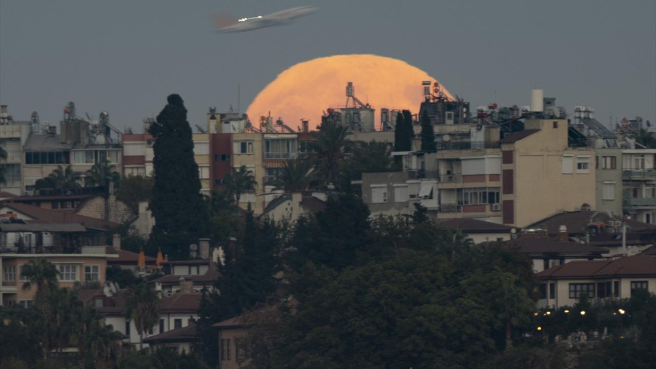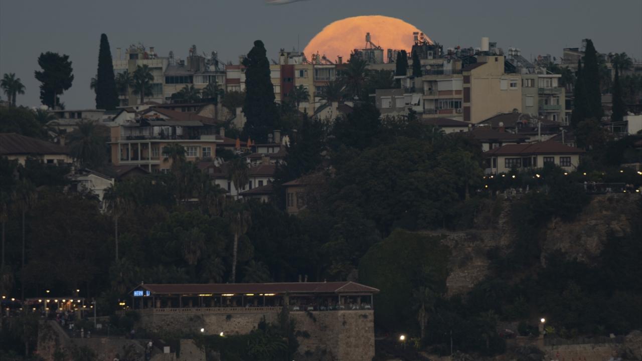 Antalya'da akşam saatlerinde beliren dolunay güzel görüntü oluşturdu.