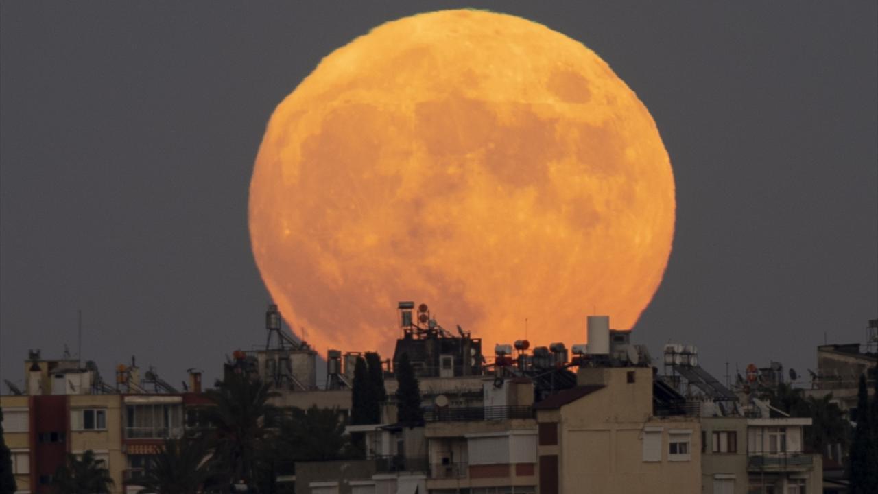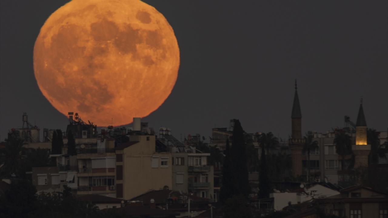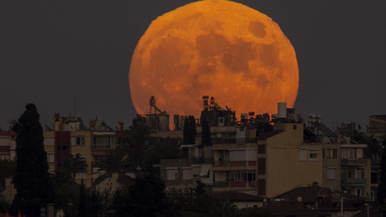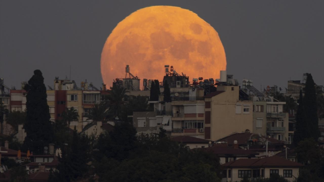 Antalya'da akşam saatlerinde beliren dolunay güzel görüntü oluşturdu.