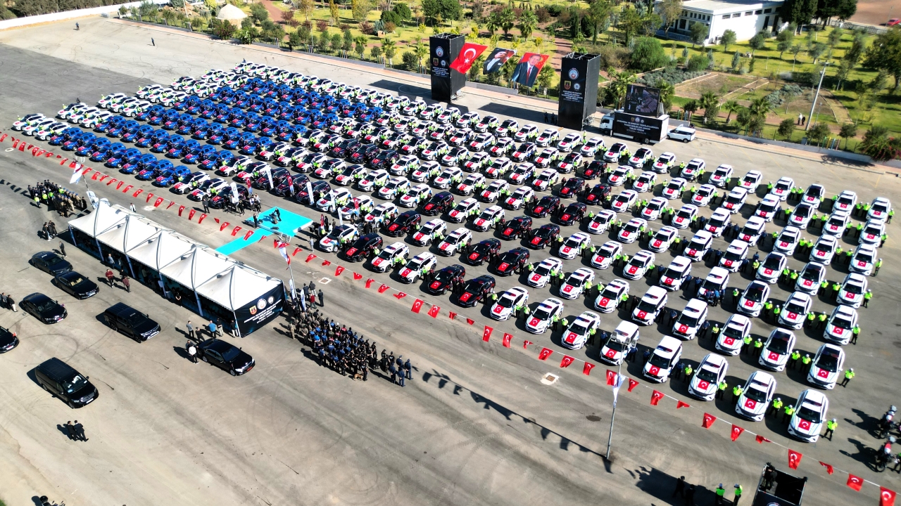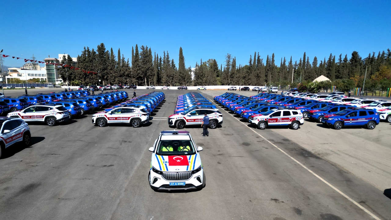 Antalya İl Emniyet Müdürlüğü ve Antalya İl Jandarma Komutanlığının ihtiyaçlarının karşılanması amacıyla tahsis edilen 87'si yerli ve milli aracımız Togg olmak üzere 225 araç törenle teslim edildi.