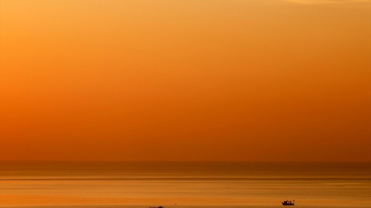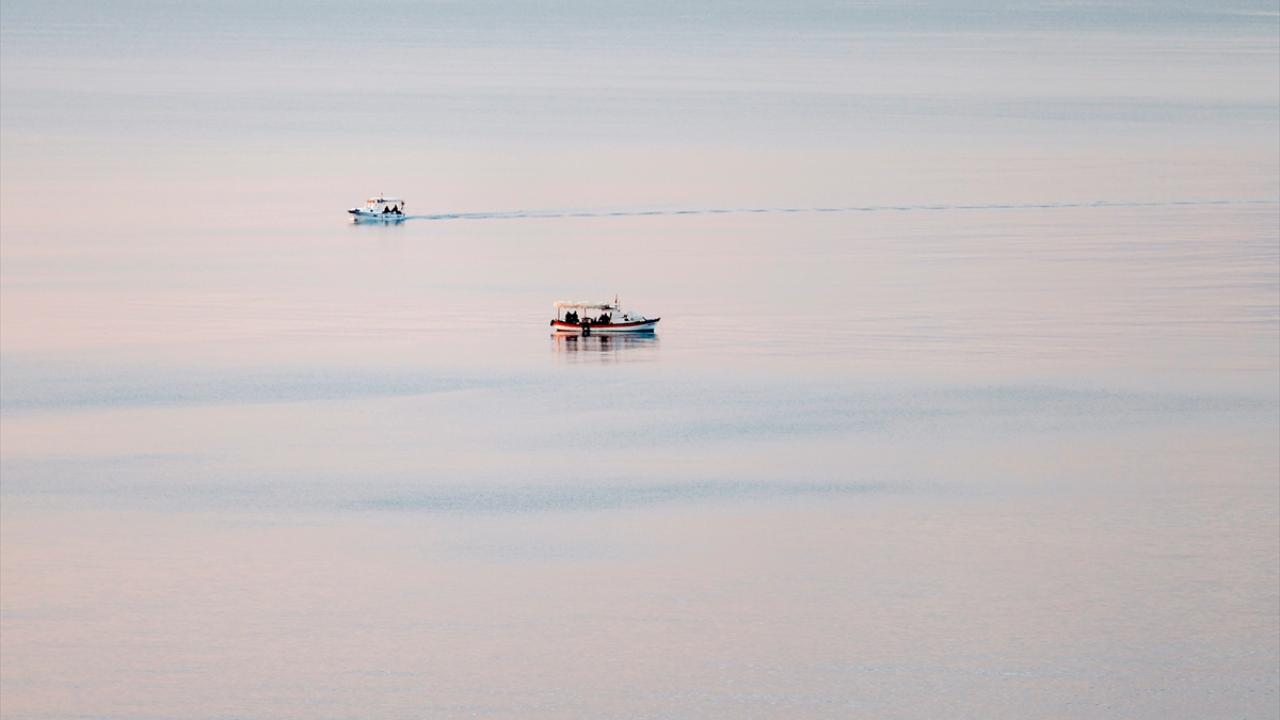 Turizmin önde gelen kentlerinden Antalya'da, Konyaaltı Sahili'ndeki balıkçılar gün doğumunda mesailerine başladı.
