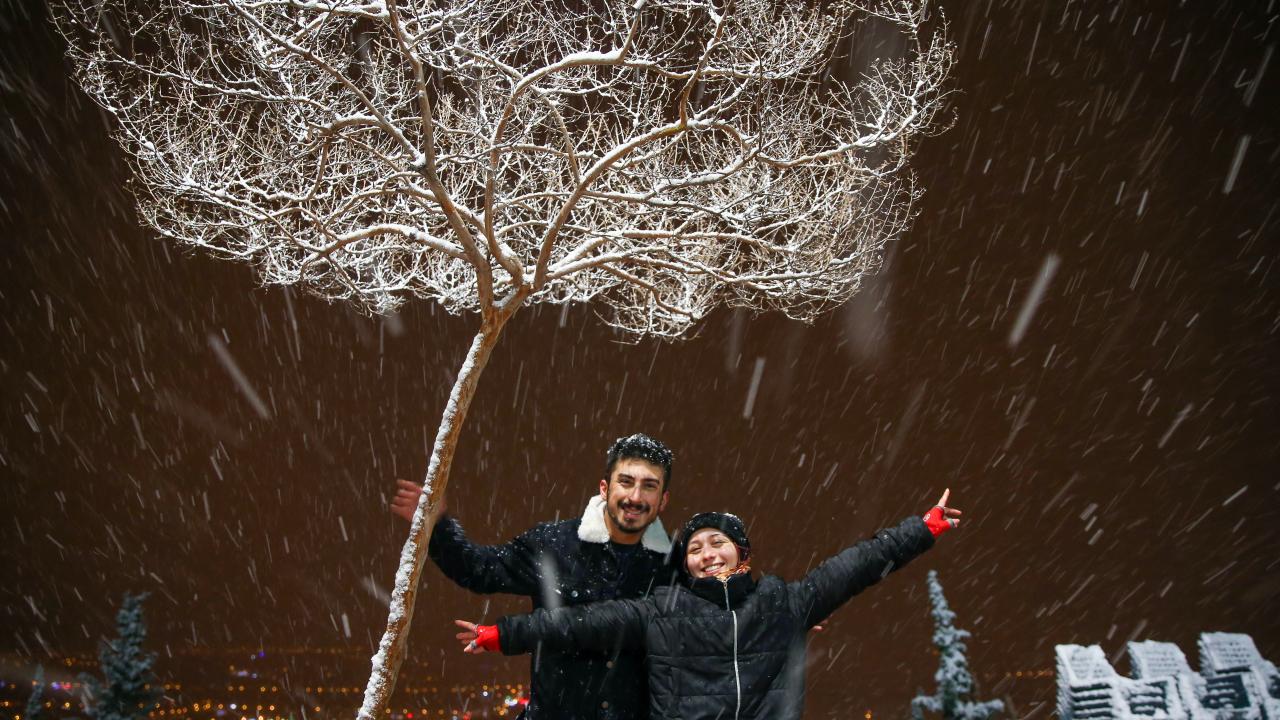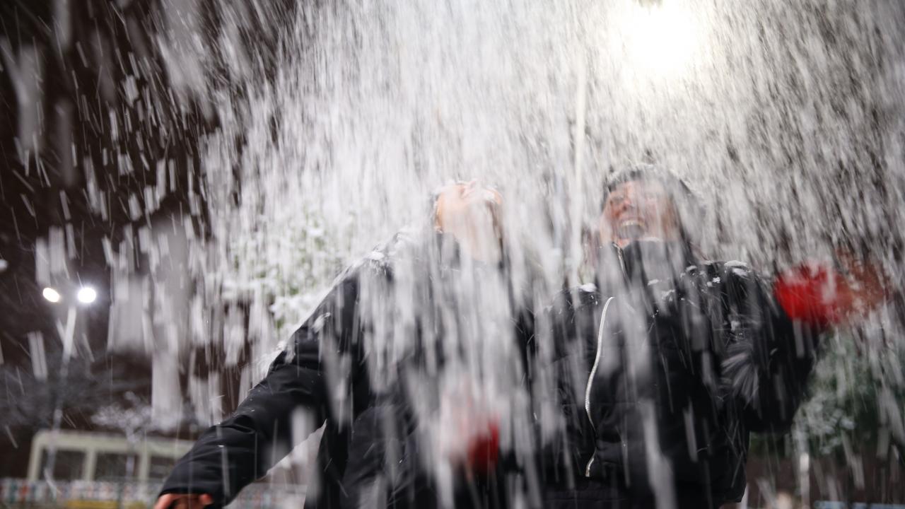 Bazı vatandaşlar, bu alanlarda kar topu oynadı.