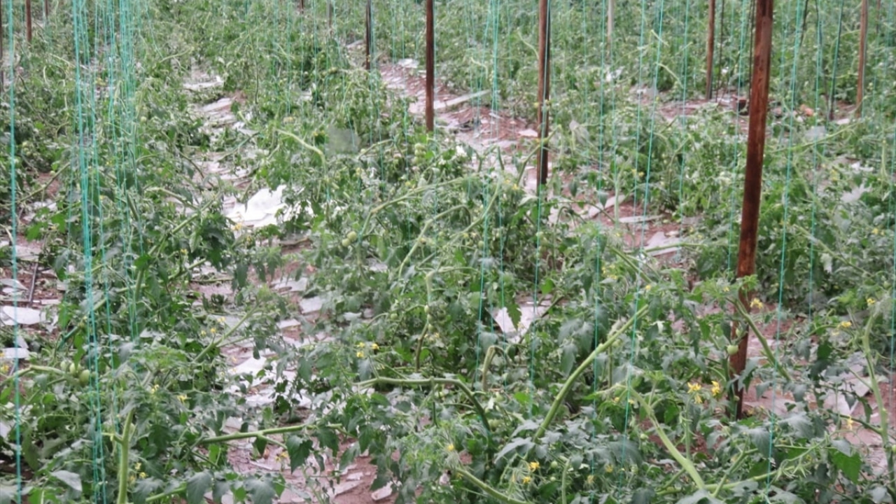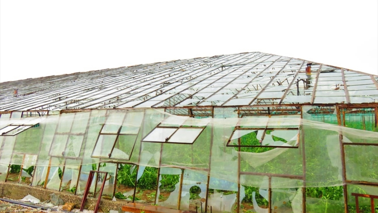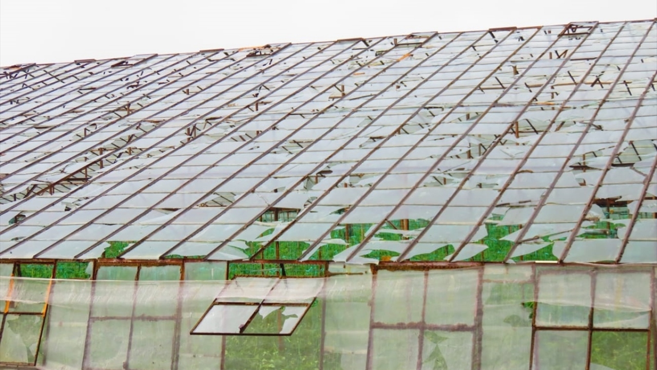 Dolu nedeniyle bölgedeki seralar zarar gördü.