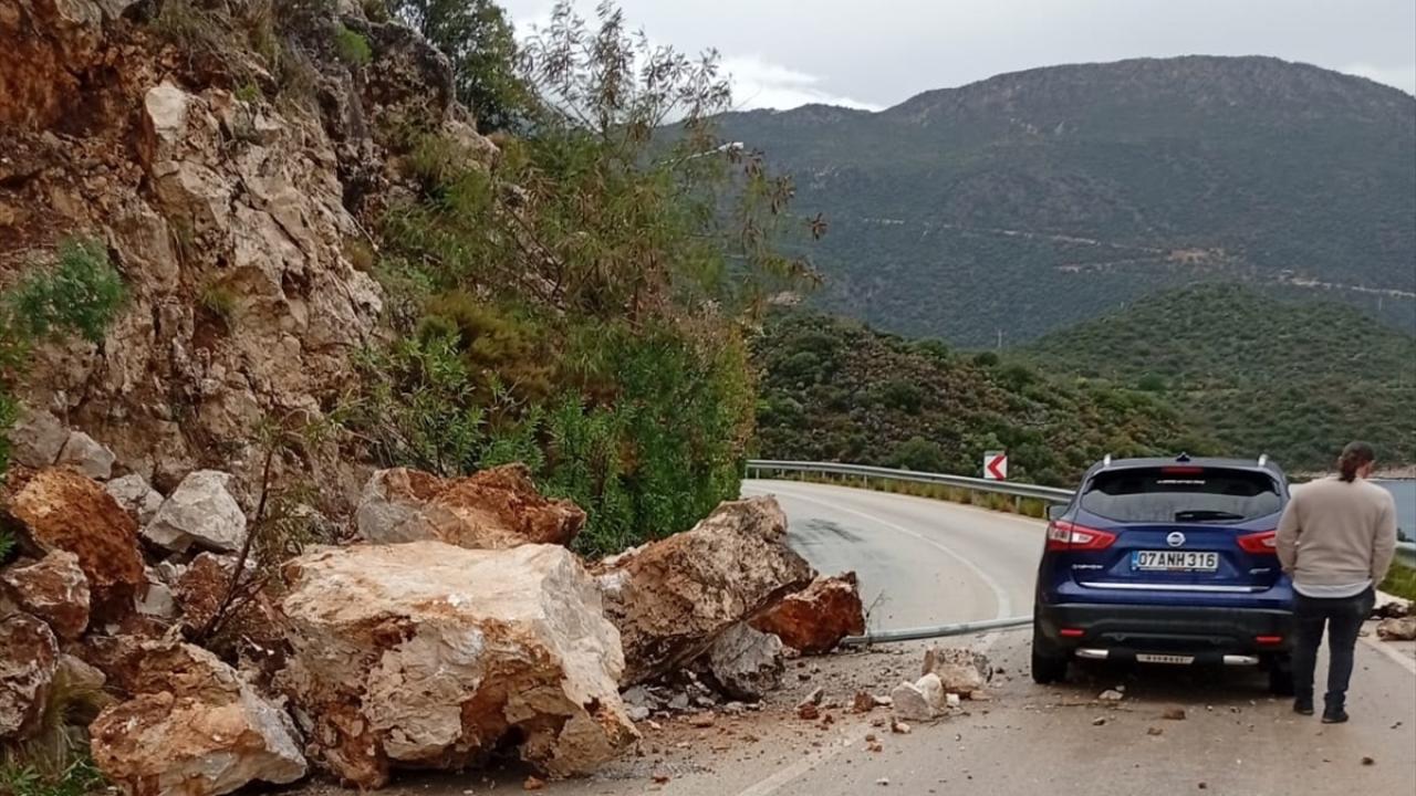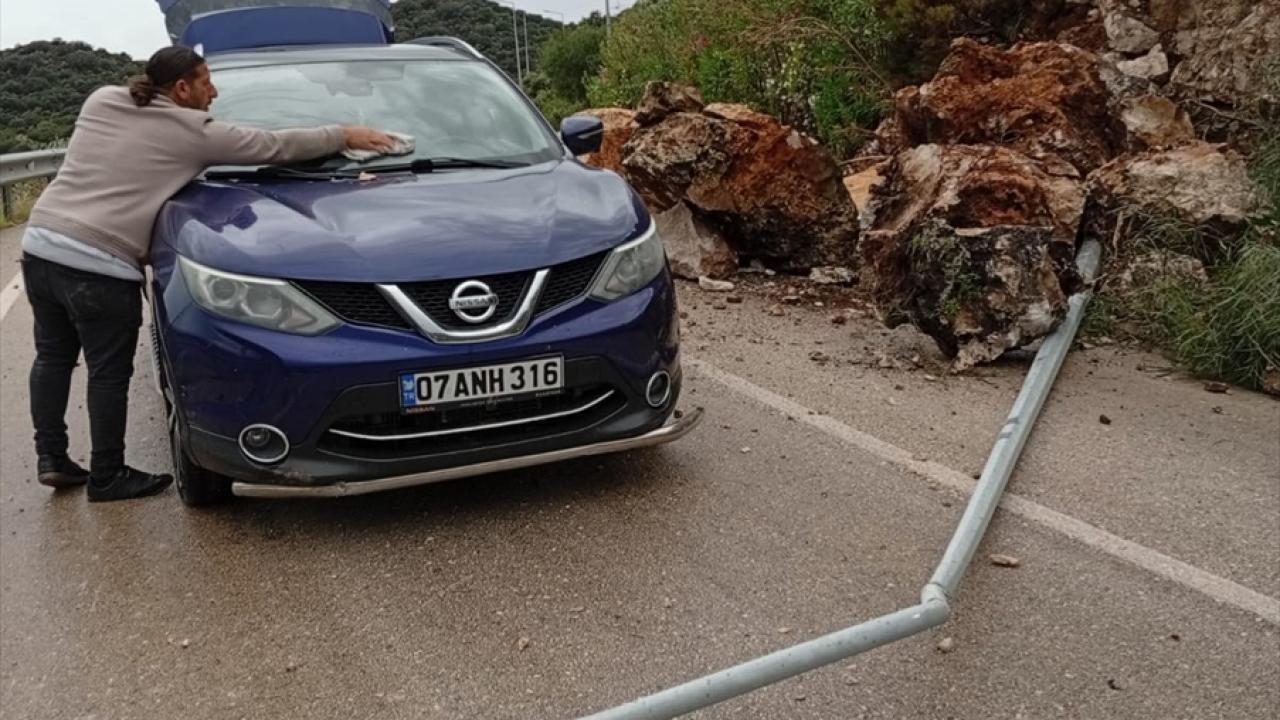 Kaş ilçesi Yarımada mevkisinde meydana gelen heyelanda seyir halindeki bir araç zarar gördü.