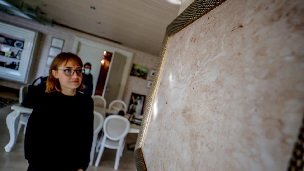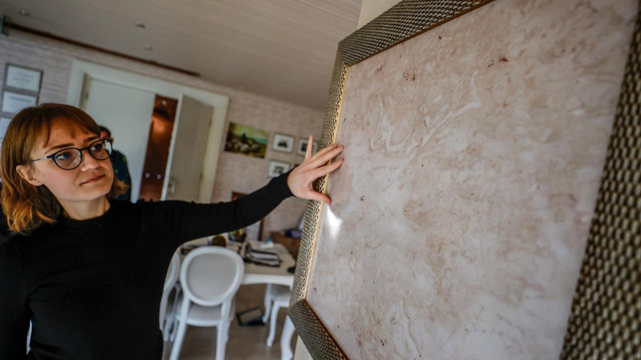 Kesilen ve plaka haline getirilen mermer yüzeyinde değişik figürler gören işçiler, durumu fabrika yetkililerine bildirdi.