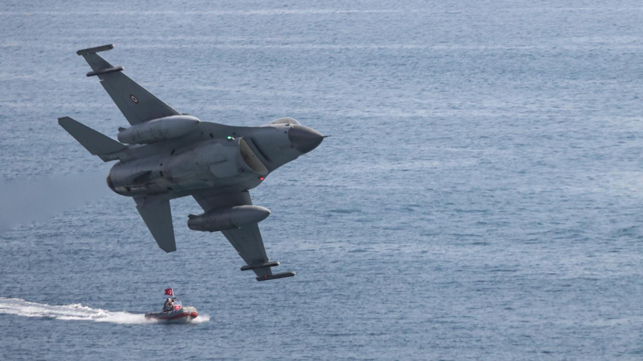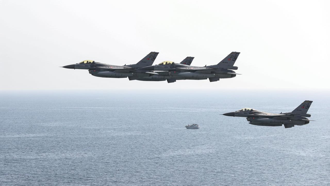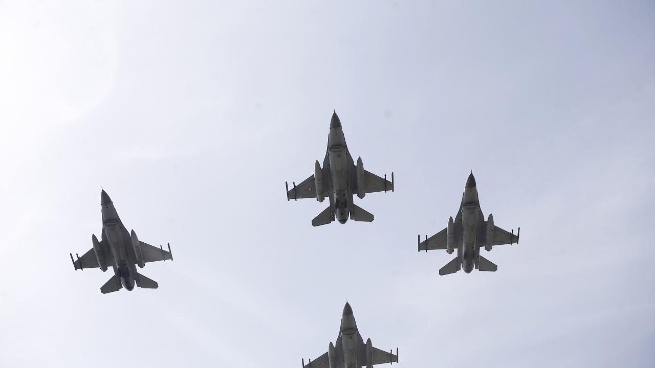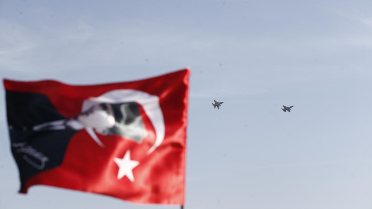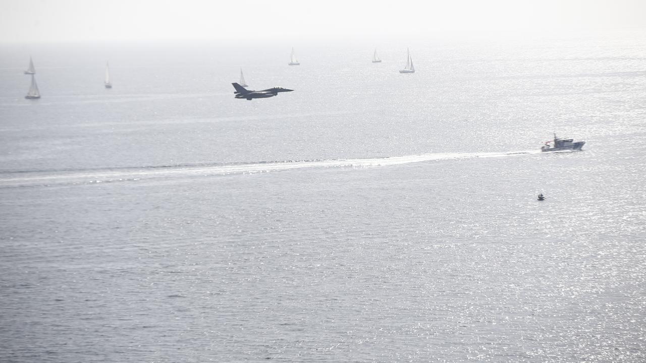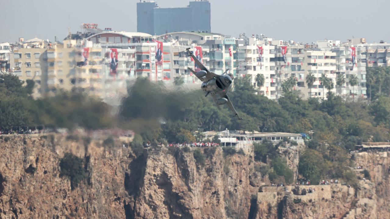 Antalya'da, Cumhuriyet'in 100. yıl dönümü dolayısıyla F-16 savaş uçakları gösteri uçuşu gerçekleştirdi.