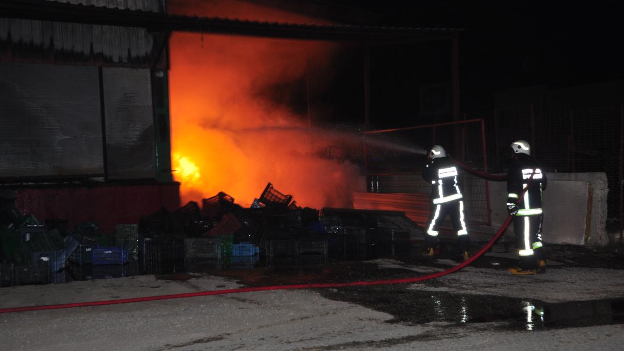 Yangın sonucu sebze meyve deposunda milyonlarca lira zarar olduğu belirtildi.