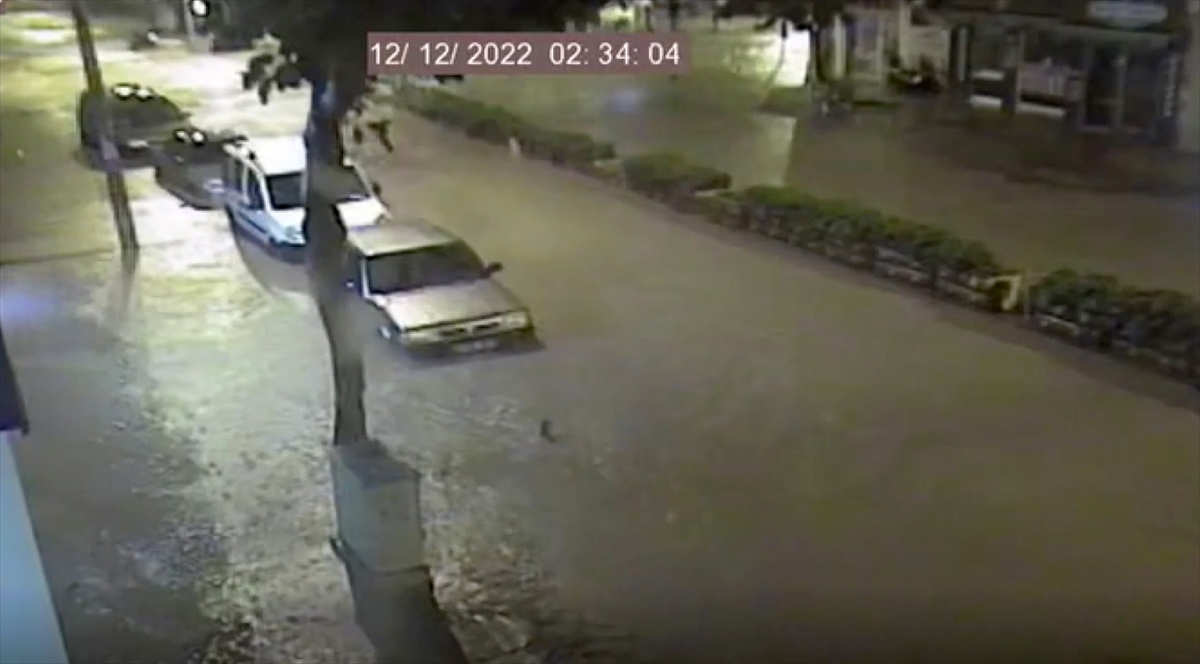 İlçede önceki gün derelerin taşmasının ardından meydana gelen afeti yansıtan görüntülerde, iş yerlerinden taşan sel sularıyla sürüklenen eşyalar, plastik kasalar, odunlar ve çuvalların sürüklenmesi yer alıyor.