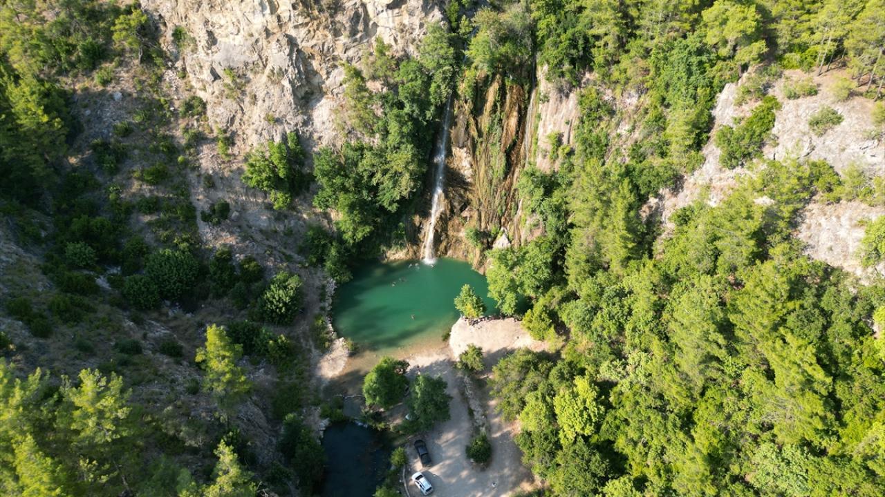 Antalya'nın Serik ilçesinde ormanın içinde 52 metreden dökülen Uçansu Şelalesi ile göletleri, doğada zaman geçirmek ve serinlemek isteyenlerin adresi oldu.