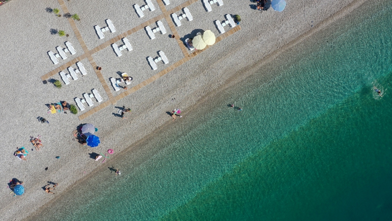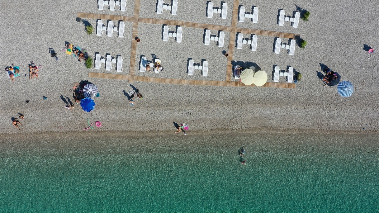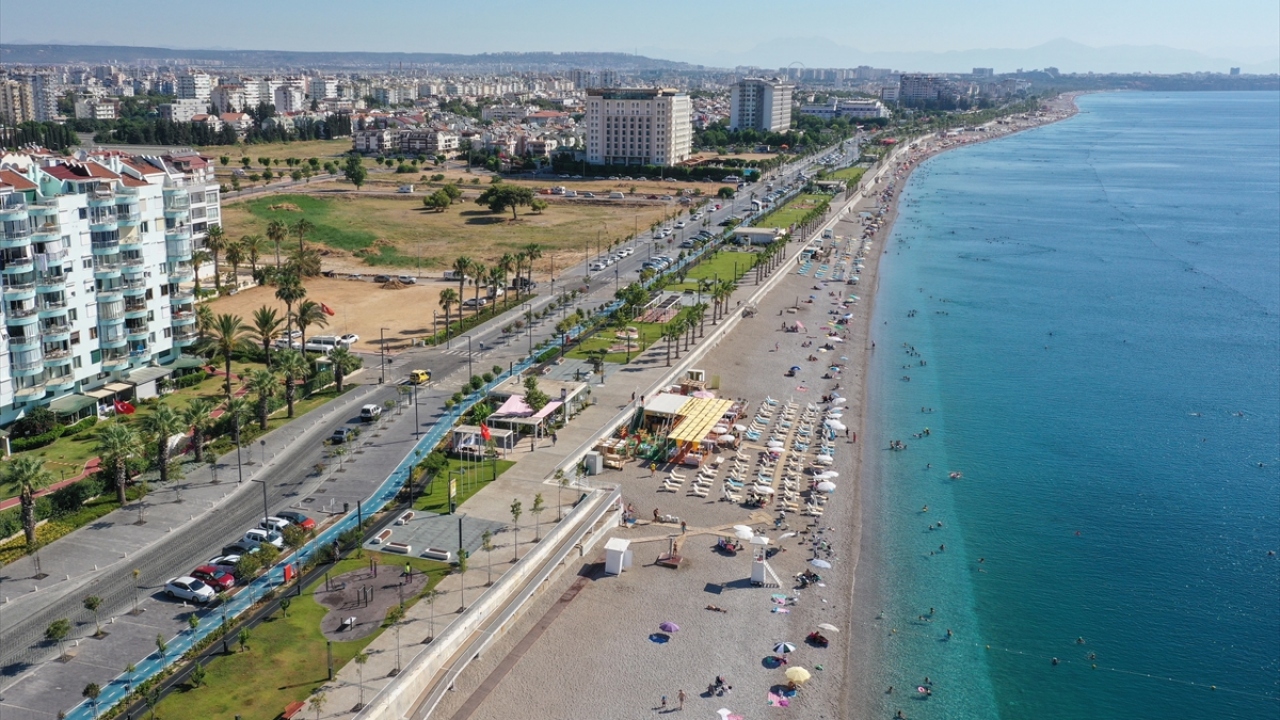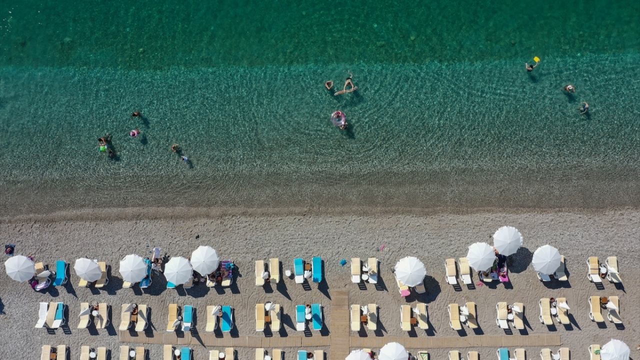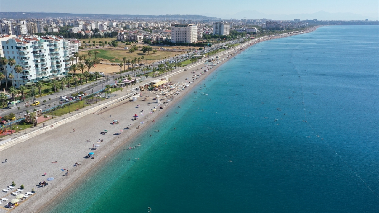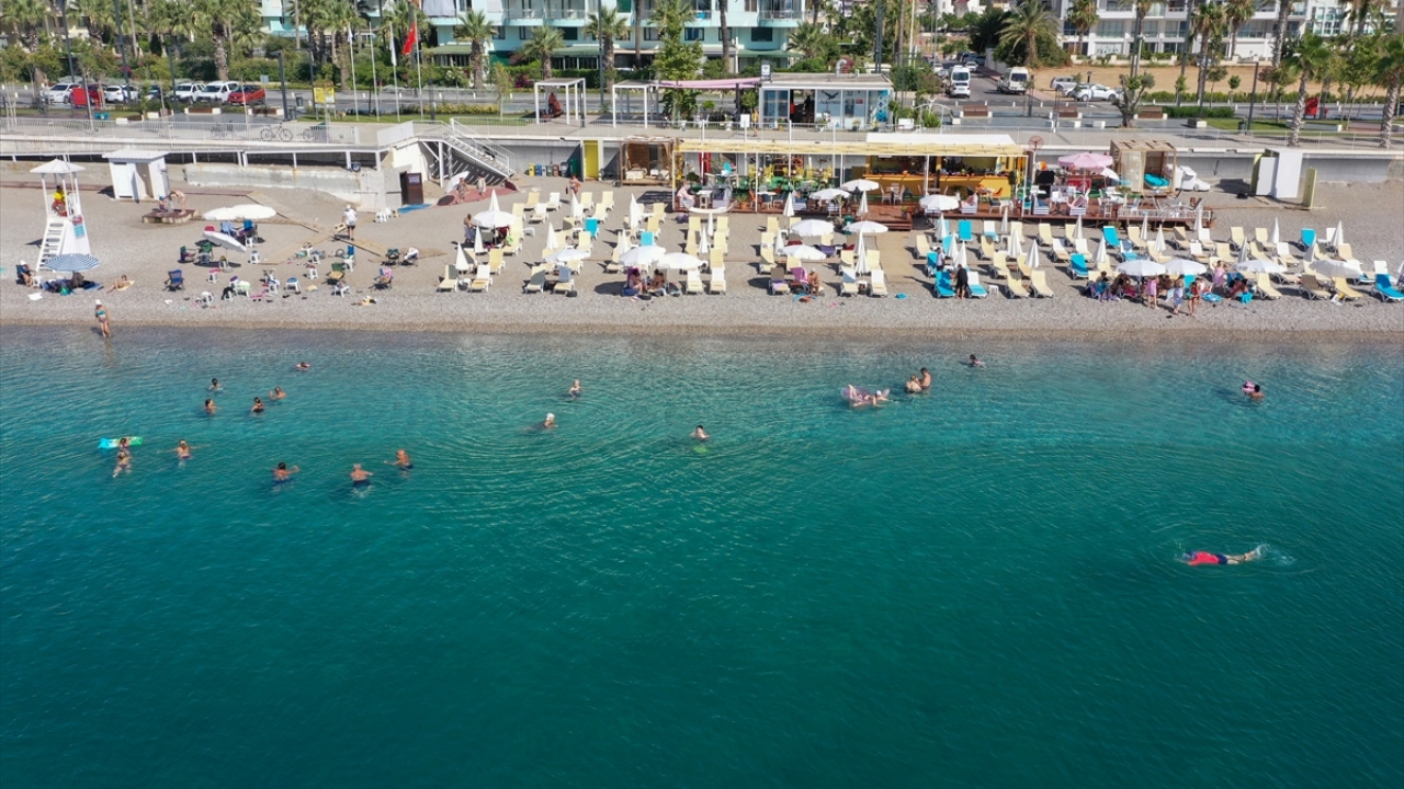 Antalya'da yerli ve yabancı turistler, sıcak hava nedeniyle sahillerde yoğunluk oluşturdu.