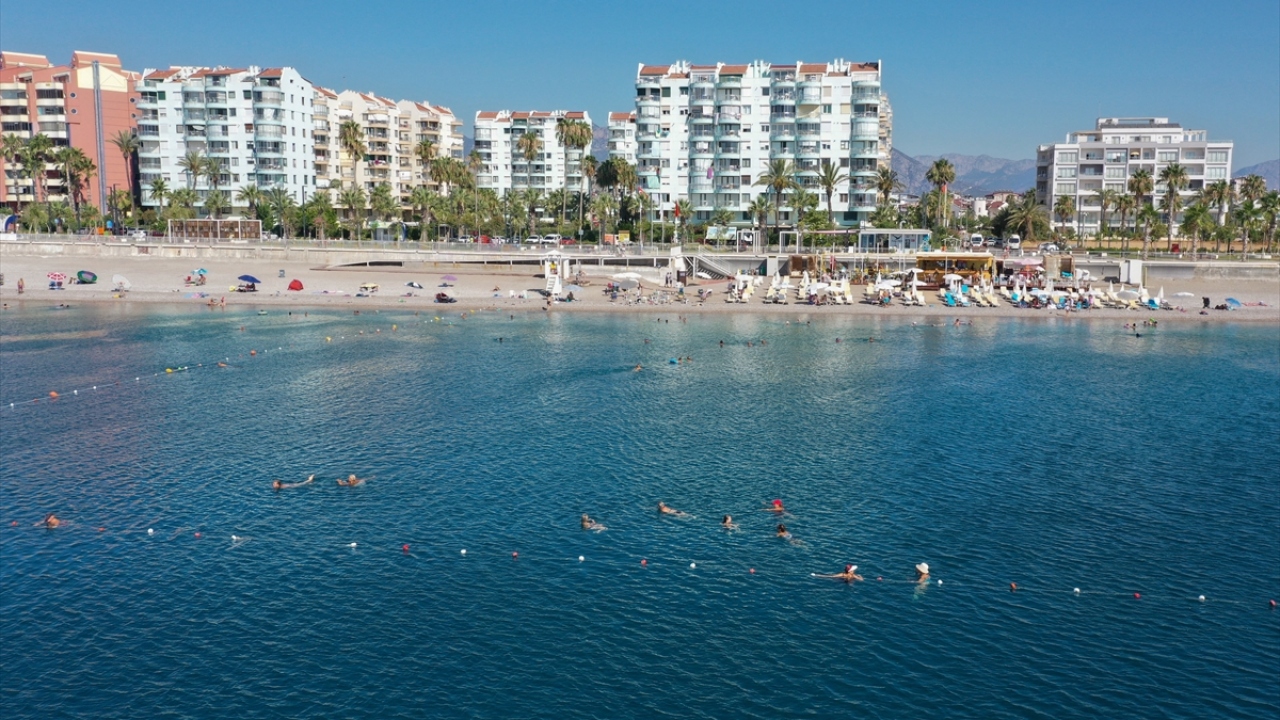 Antalya'da sıcak havadan bunalanlar sahillerde serinlemeye çalıştı