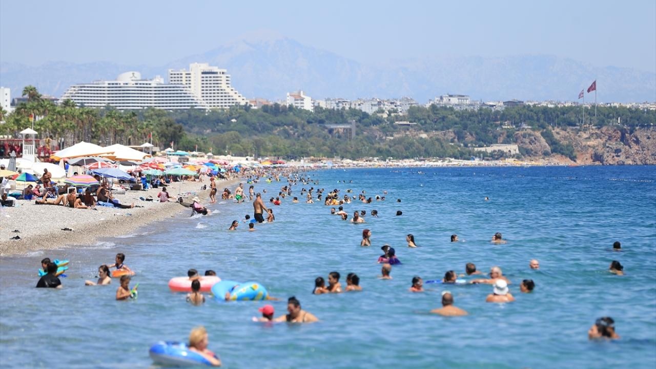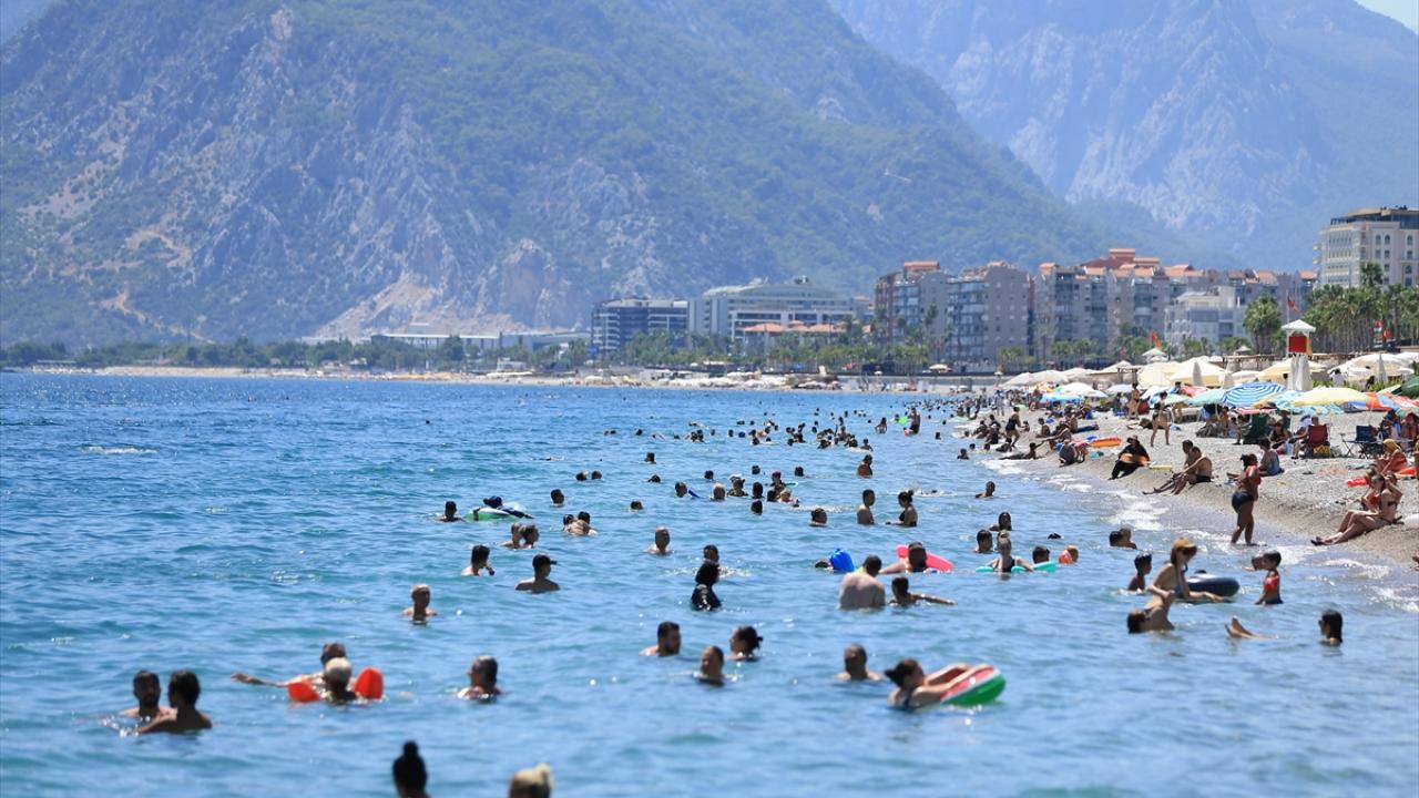 Sıcak hava ve yüksek nemden bunalan kent sakinleri ile turistler, Konyaaltı ve Lara sahillerinde denize girip serinlemeye çalıştı