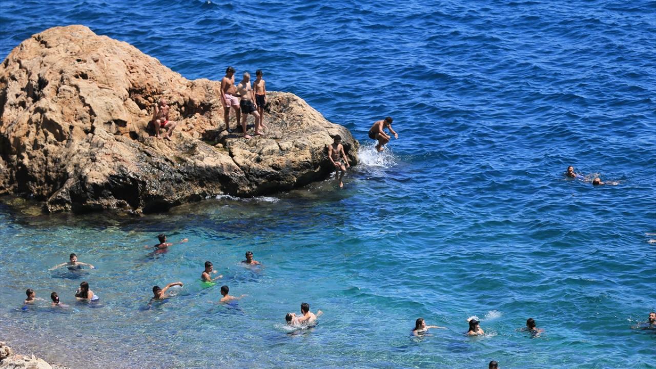 Bazı vatandaşlar kayalıklardan denize atladı bazıları da gölgede denizi izlemeyi tercih etti.