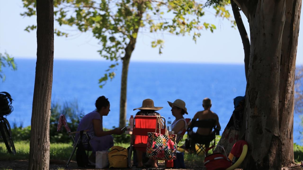 Deniz kenarına kurdukları kamp sandalyelerinde oturanların yanı sıra birçok kişi parklardaki gölgelik alanlarda vakit geçirdi.