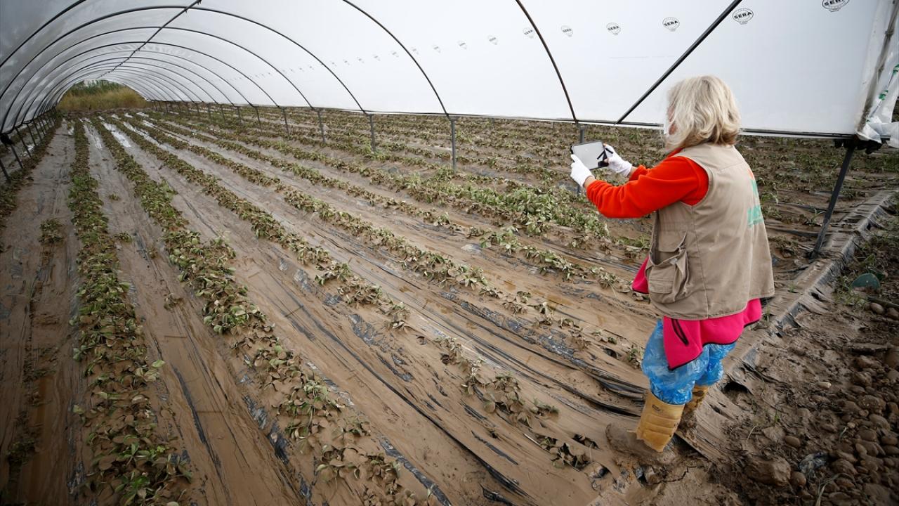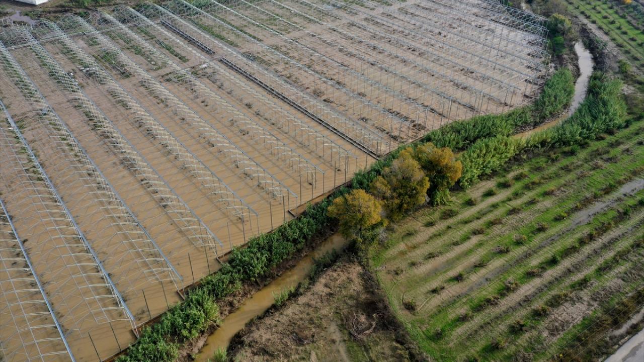 Bölgede seraların yanı sıra narenciye ve nar bahçelerinin de su altında kaldığı görüldü.