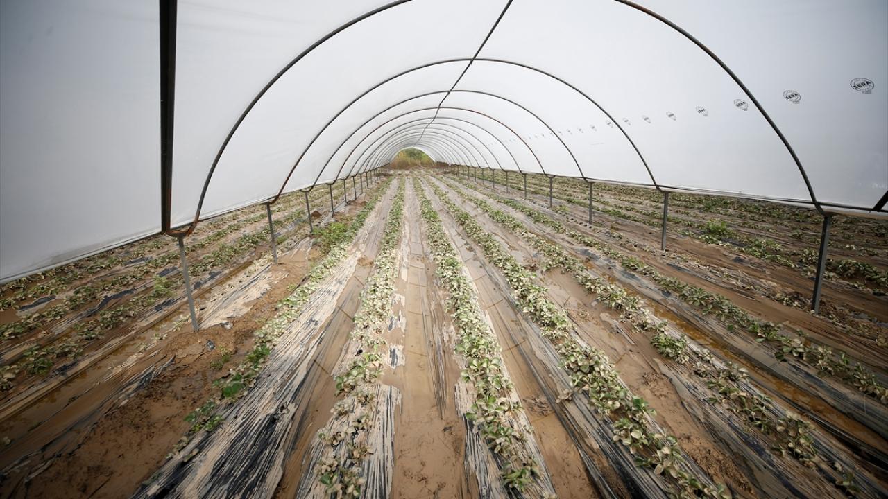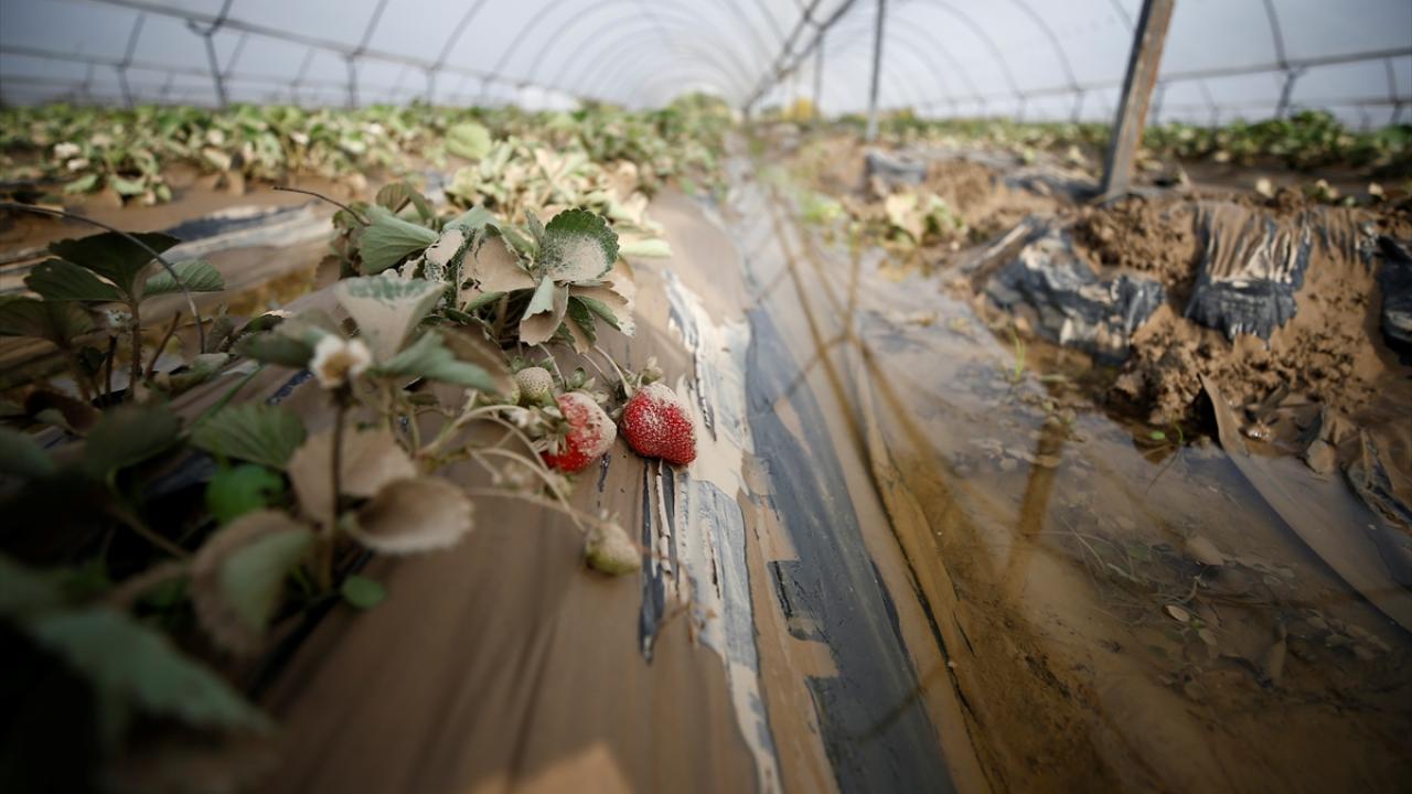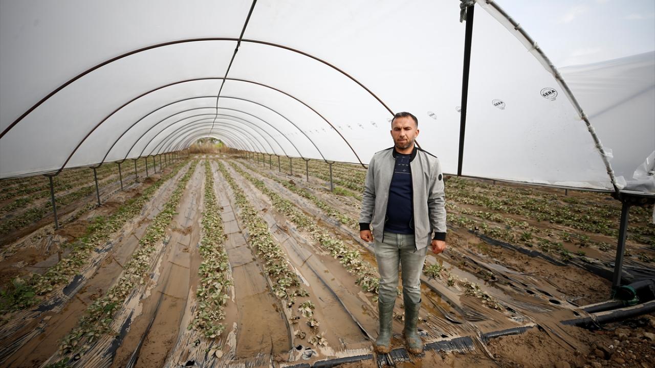 Eminceler Mahallesi`nde çiftçilik yapan Hamdullah Pervane, 55 dönüm çilek serasının tamamen zarar gördüğünü söyledi.