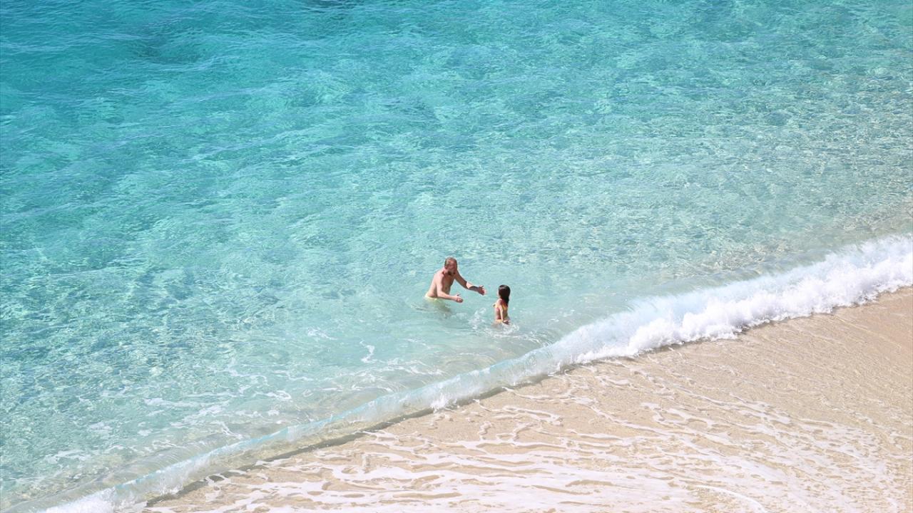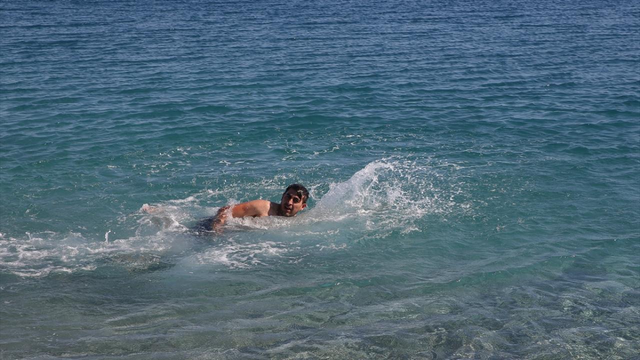 Antalya'da güneşli havasını değerlendirmek isteyen tatilciler, mevsim kış olmasına rağmen denize girmenin keyfini yaşadı.