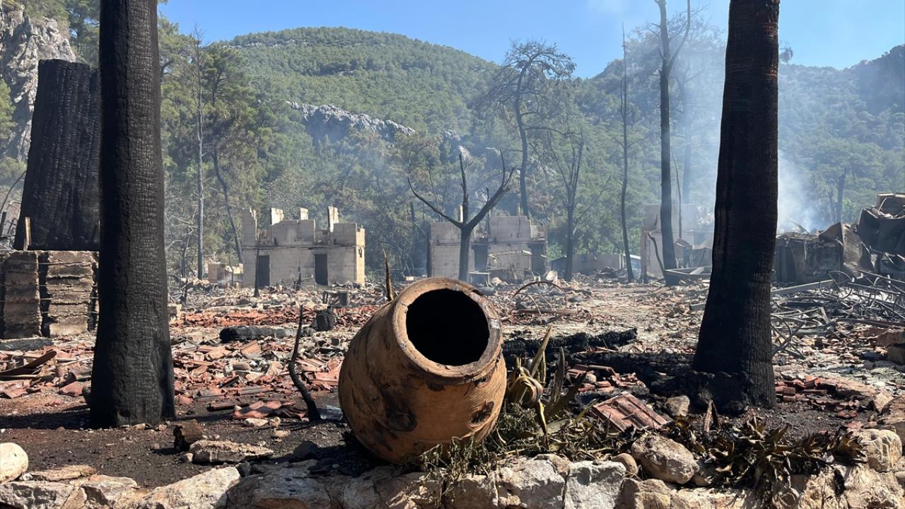 İşletmedeki bungalov evlerin hasar gördüğü yangının çıkış nedeni araştırılıyor.