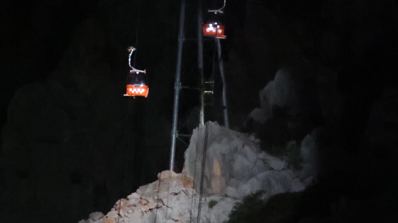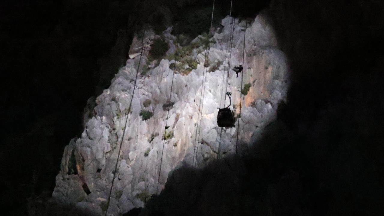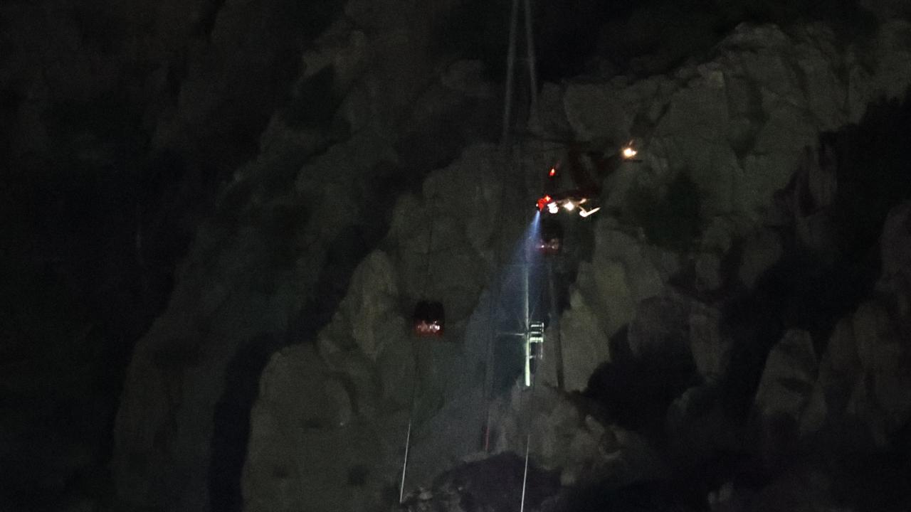 Teleferik kabinlerinde mahsur kalan 184 kişinin tahliyesi için gece uçuş kabiliyetine sahip helikopterler bölgeye sevk edildi.