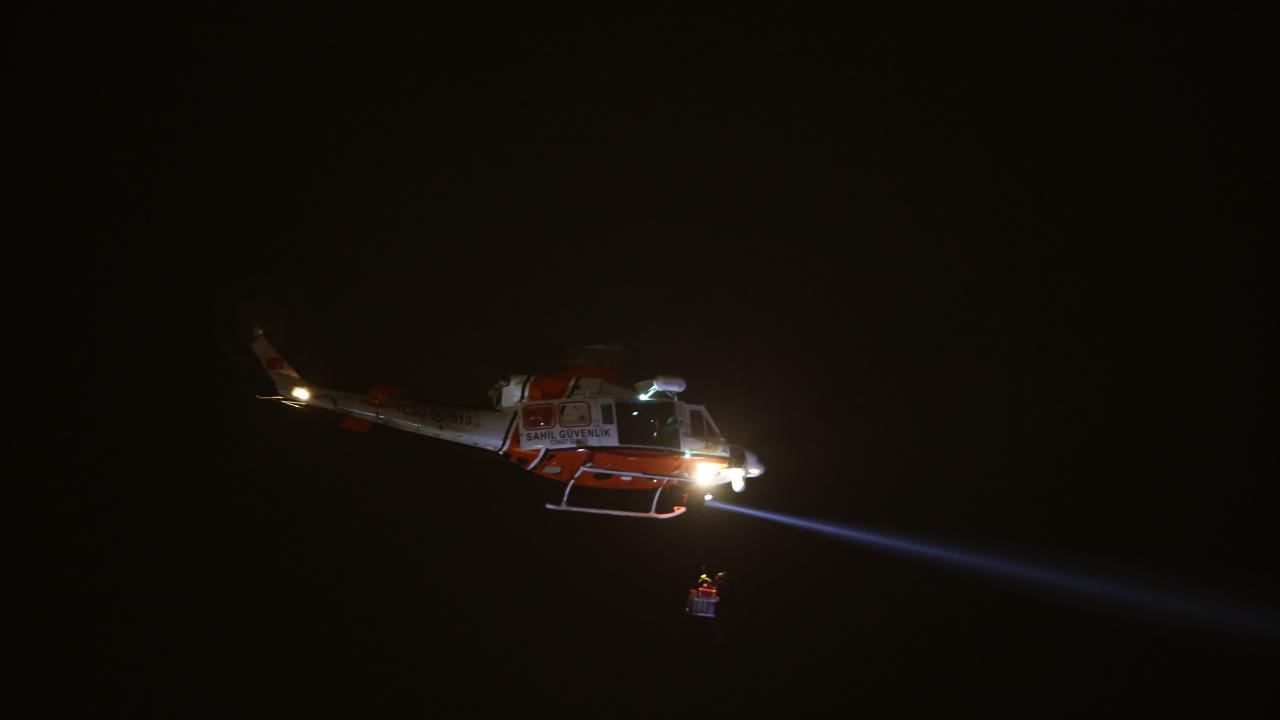 Mahsur kalan vatandaşları kurtarma çalışmaları, gece görüşlü helikopter eşliğinde sürüyor.