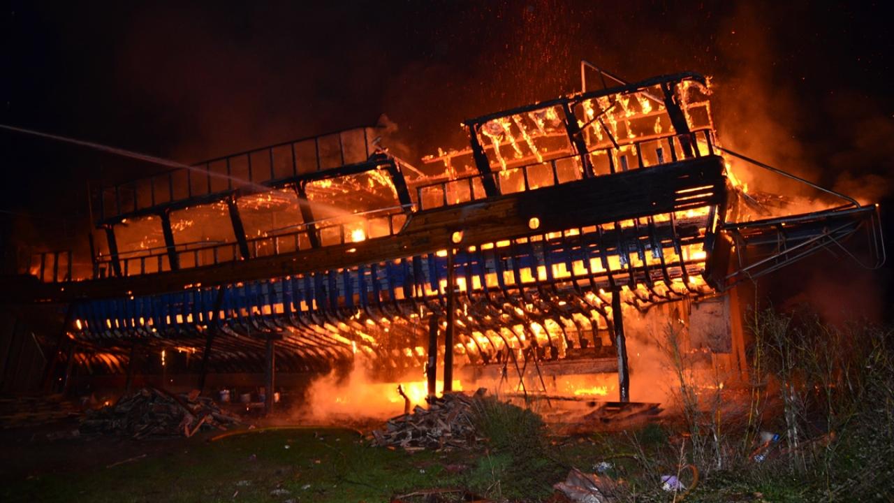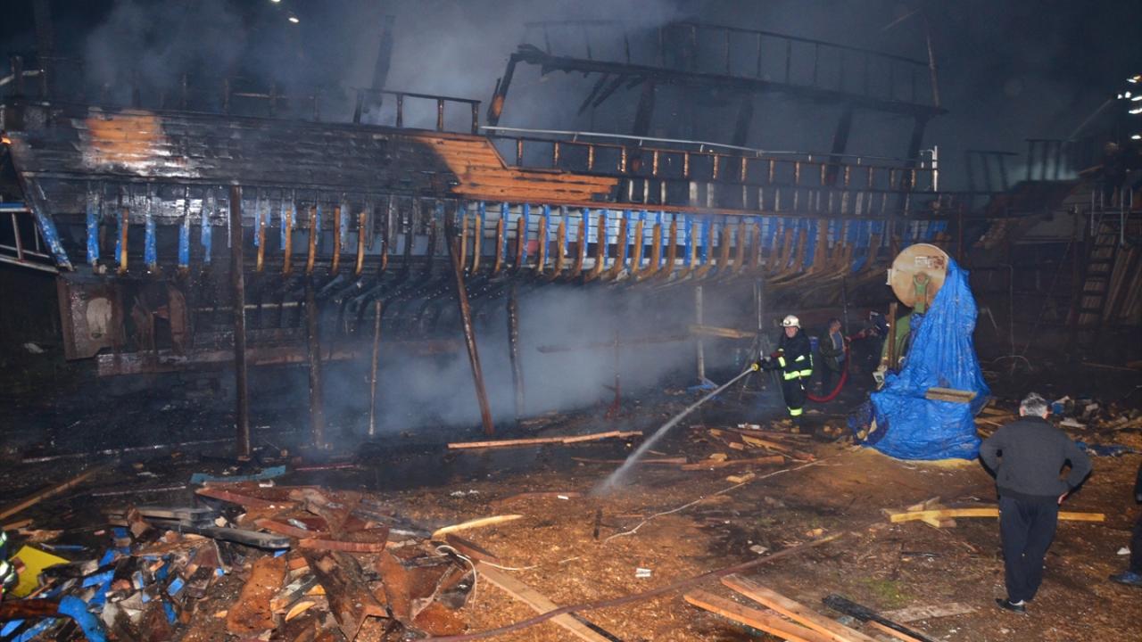 Manavgat`ın Ulualan mevkiinde bir tersaneye ait çekek yerinde tamiratı yapılan 24 metrelik ahşap tur teknesinde bilinmeyen nedenle yangın çıktı.