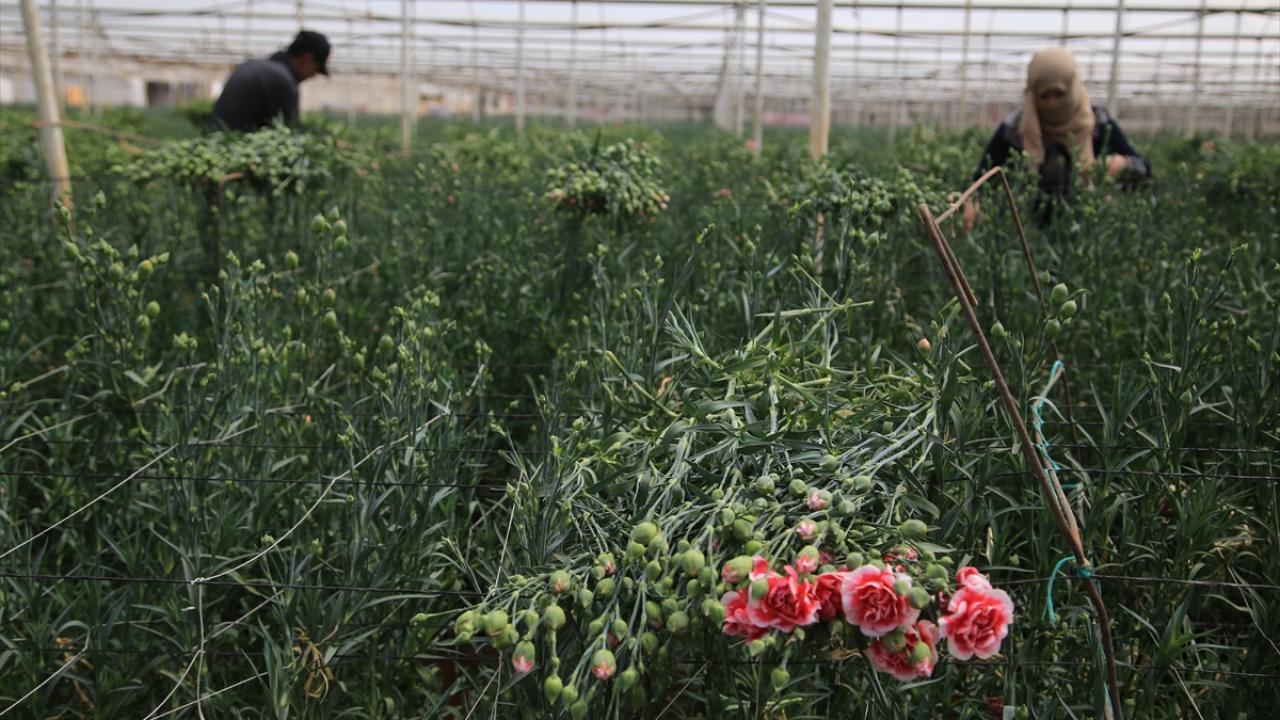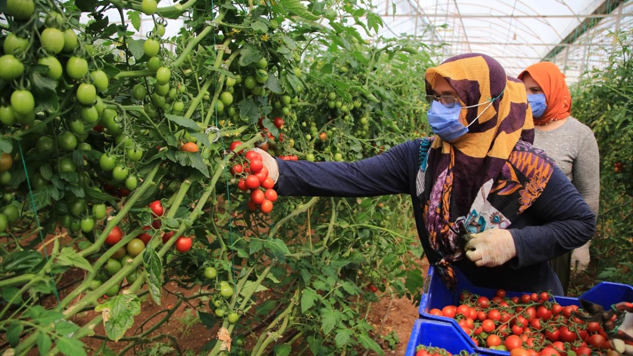 Yeni tip koronavirüs (Covid-19) salgınıyla mücadele kapsamında eldiven giyerek, maske takarak seralara giren üreticiler, sosyal mesafeye de özen gösteriyor.