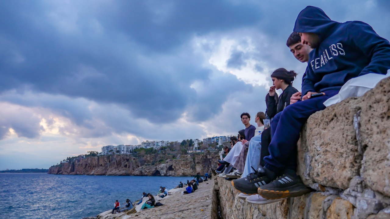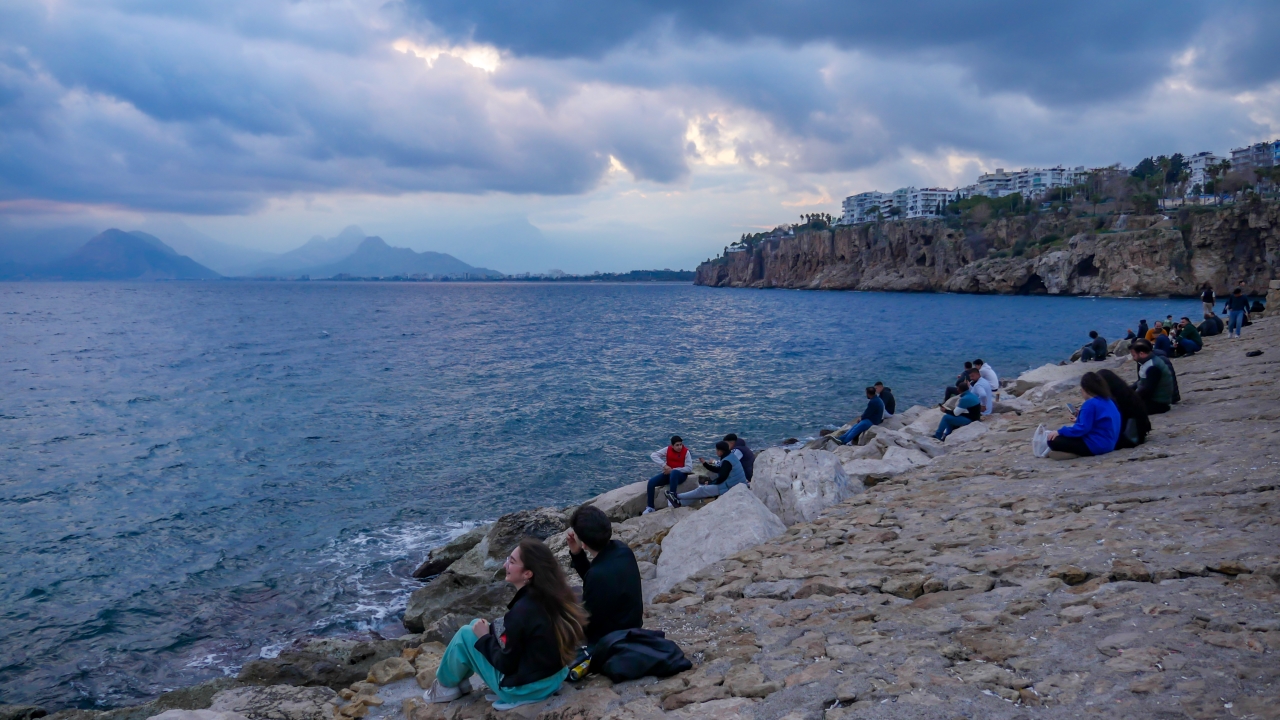 Her akşam limandaki mendirekte yerlerini alan çok sayıda yerli ve yabancı ziyaretçi güneşin Beydağları üzerinden batışını izler.