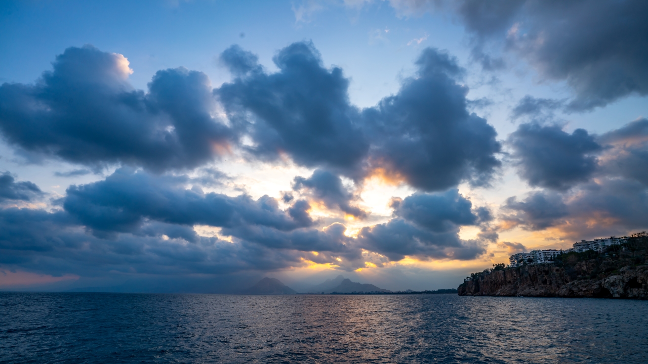Dün akşam saatlerinde Antalya`da gökyüzünde oluşan yağmur bulutları Yat Limanı müdavimlerini hayal kırıklığına uğratsa da ortaya çıkan görüntü onlara farklı bir deneyim yaşattı.