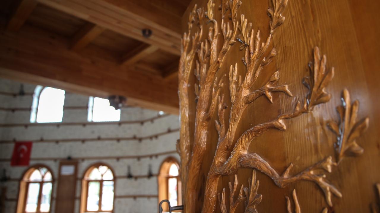 Ağacı öne çıkarmak için caminin kapı ve minberinde oyma yöntemiyle ağaç motifleri yapıldığını belirten Dikici, şunları söyledi: