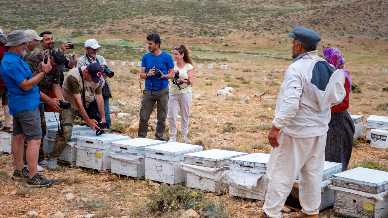 Antalya`nın Elmalı ilçesinde arıcılık yapan bir üretici ilk ürününü bölgedeki yaylaları görüntüleyen doğa fotoğrafçılarına ikram etti.