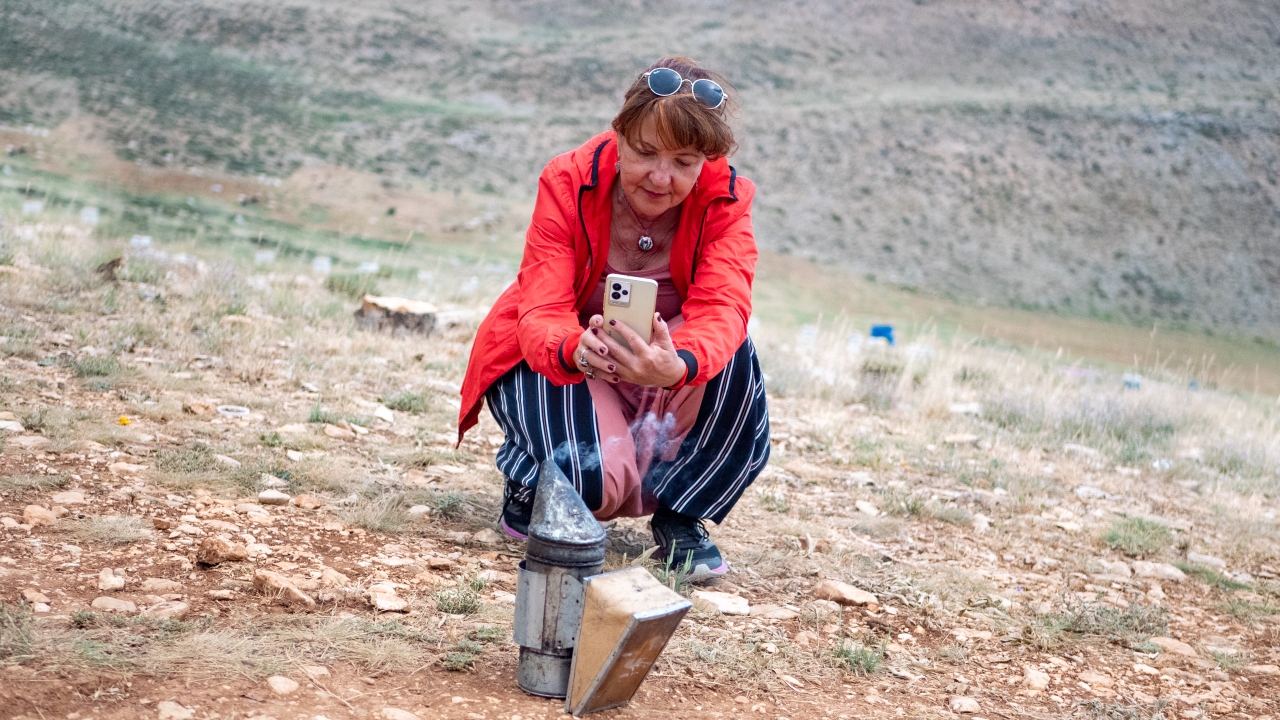Ziyaretçilerine yayla yaşamı ve arıcılık hakkında bilgi de veren üretici kovanlarını gezdirdi objektiflere poz verdi.