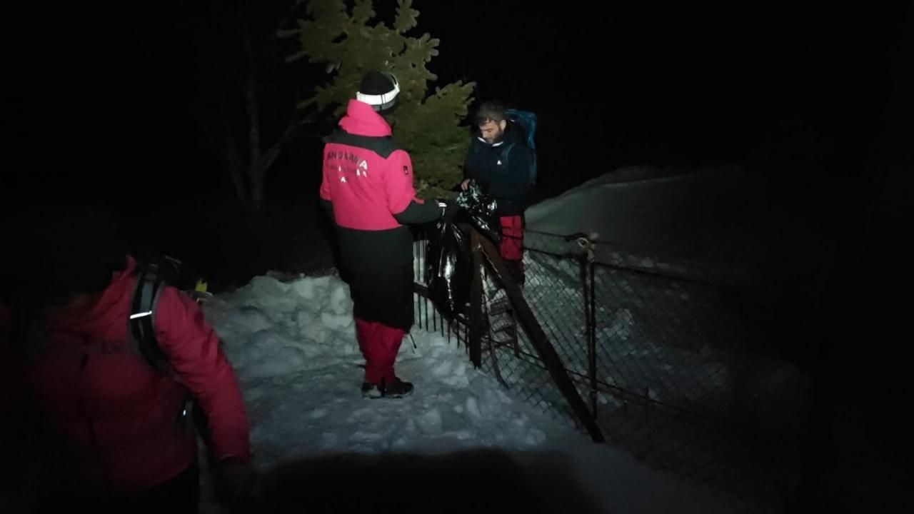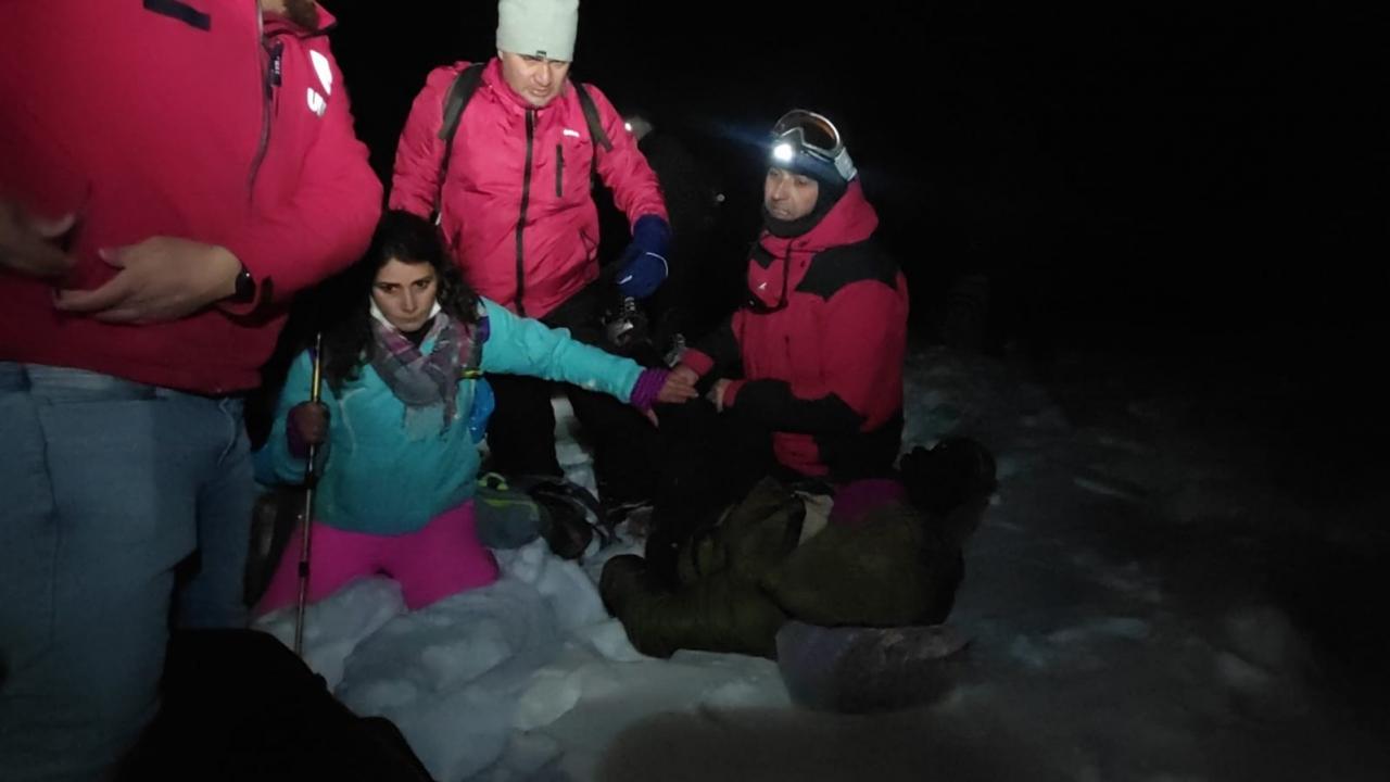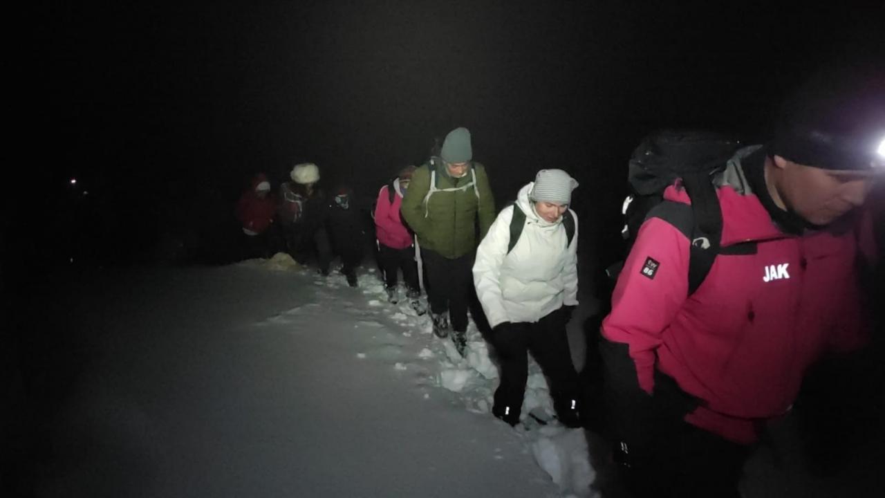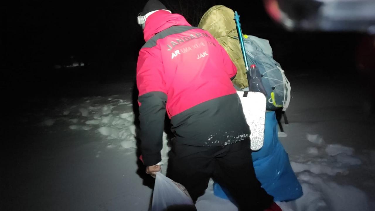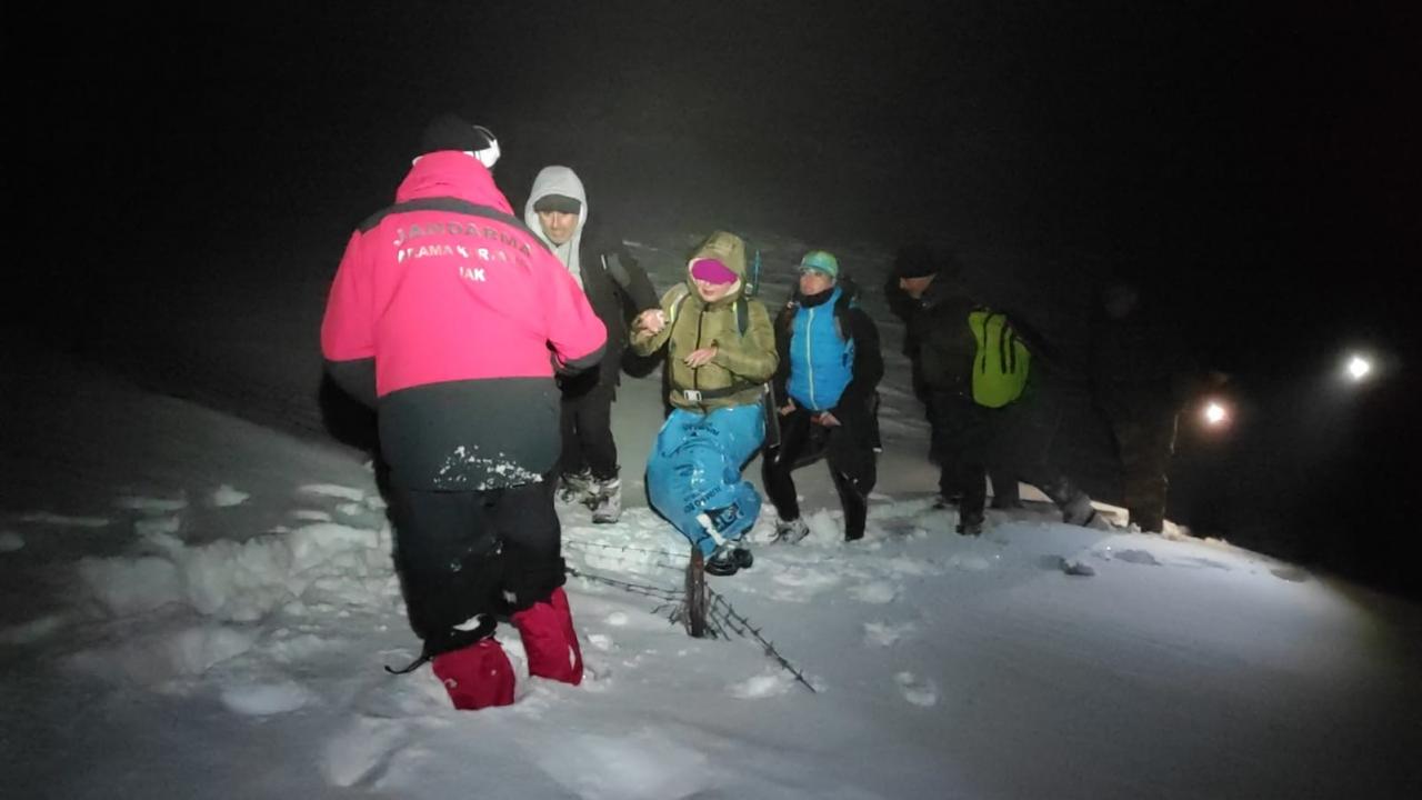 Yoğun kar yağışı nedeniyle kapanan yollardan dolayı JAK ve UMKE ekipleri, yarım saat yürüyerek gruba ulaştı.