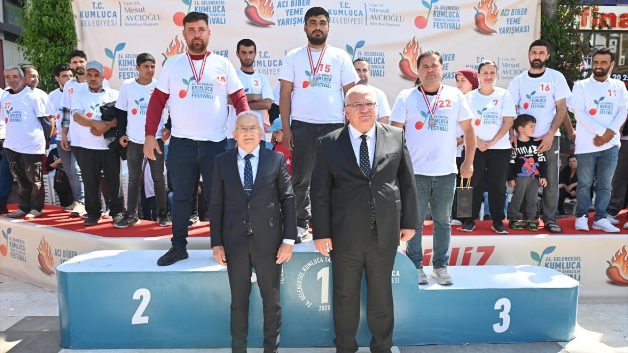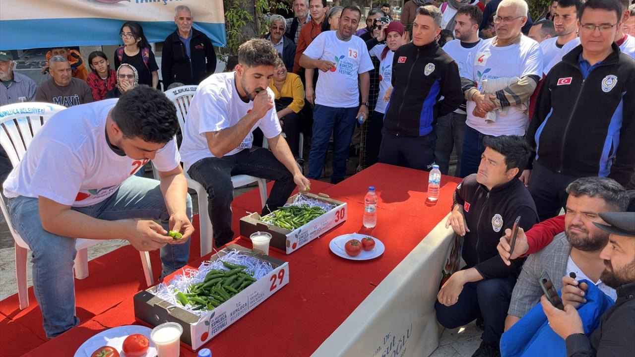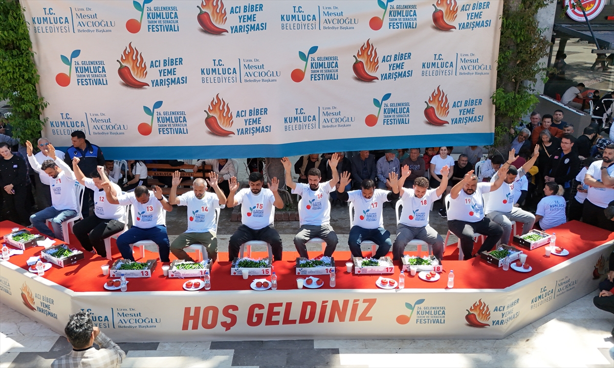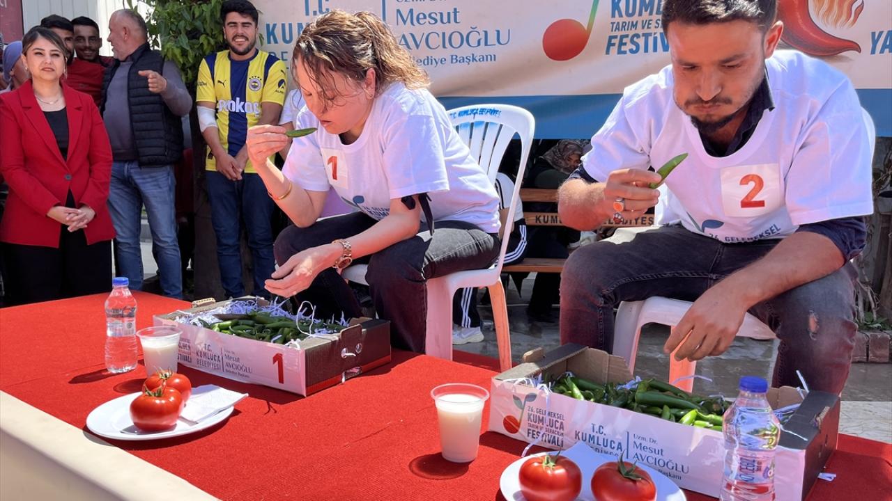 Antalya'nın Kumluca ilçesindeki 26. Tarım ve Seracılık Festivali kapsamında düzenlenen yarışmaya katılanlar, 3 dakikada en fazla acı biber yiyebilmek için mücadele etti.