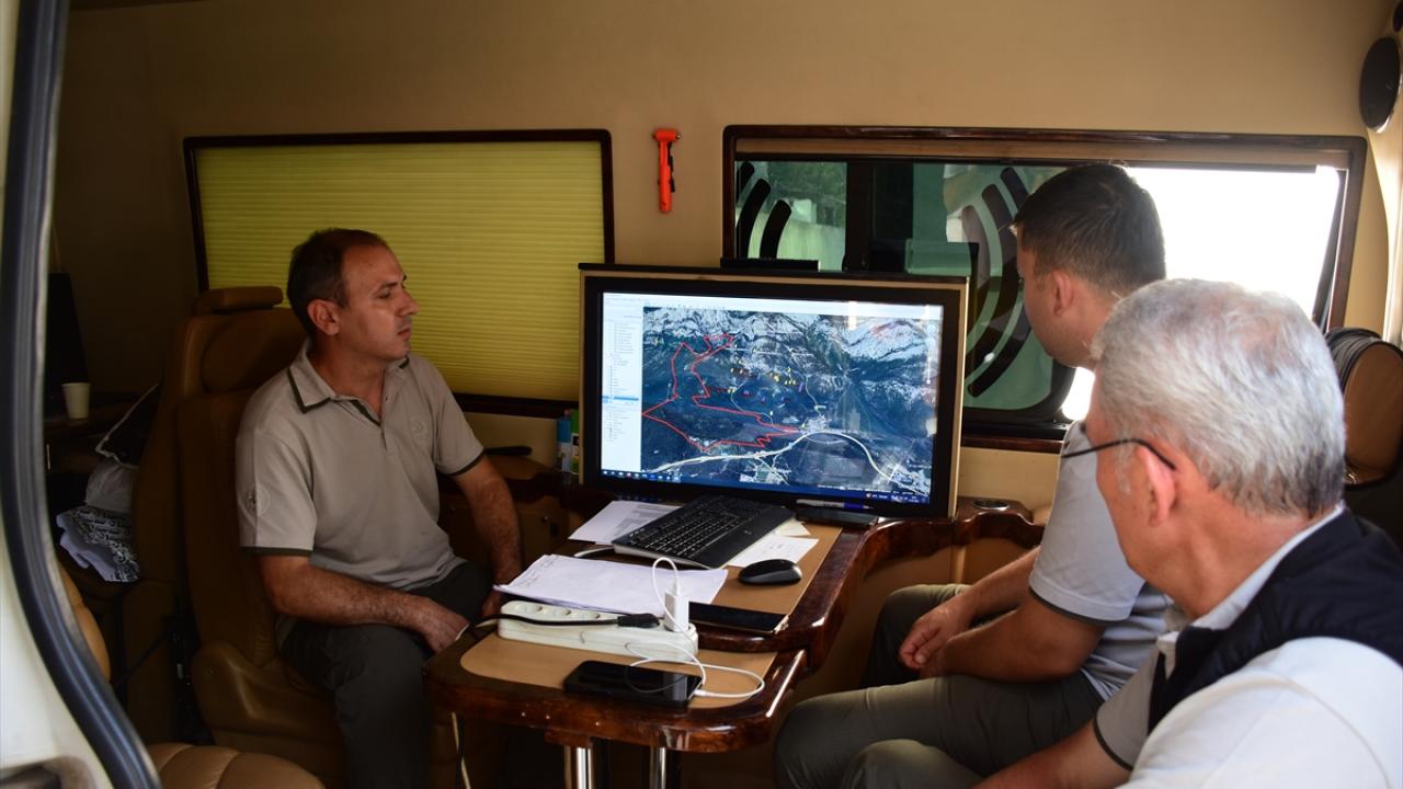 Antalya'nın Kemer ilçesindeki orman yangınına havadan ve karadan yapılan müdahale, Orman Genel Müdürlüğünün teknolojik imkanlarla donatılmış "Yangın Yönetim Aracı"ndan koordine ediliyor.