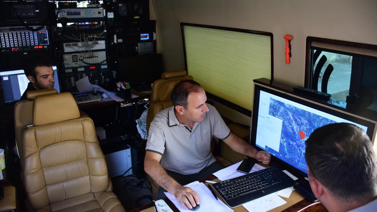 "Araçlarımız 12,5 milyon hektarlık ormanlık alanımızda bulunan bölge müdürlüklerinin hepsinde var. Araçlarımızda Orman Genel Müdürlüğündeki yangın yönetim merkezinde ne varsa aynısı var. Aracımızda yangın koordinasyon merkezinde görevli 3 personel yer alıyor. Arkadaşlarımız yangın çıktığında araçlarla birlikte bölgeye intikal ediyorlar. Araç içerisinde her türlü haberleşme sistemi mevcut. Telsizler, mobil meteoroloji istasyonu, üzerinde etrafındaki yangını takip eden kameralar var, diğer kulelerimizde takılı kameraları buradan izleyebiliyoruz. İHA görüntülerini anlık olarak izliyoruz. İnsanlı keşif uçağının aktardığı verileri izleyip sahadaki araçları kritik noktalara yönlendirebiliyoruz. Bu sahada elimizdeki güce hakim olmamızı ve daha verimli kullanmamızı sağlıyor."