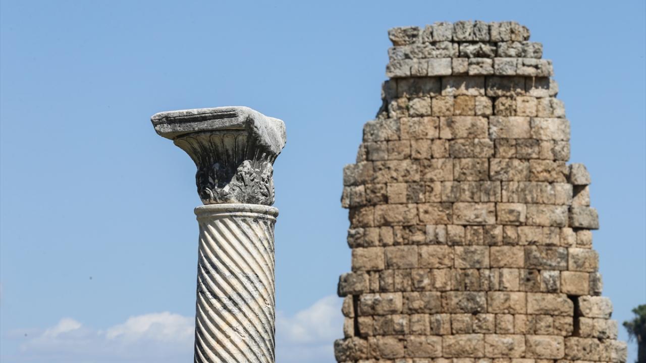 Kentin simgesi iki yuvarlak kule, sur duvarları ile eşine ender rastlanan sütunlu cadde, su kanalı, mozaikleri, stadyum ve tiyatrosuyla ziyaretçilerine başka bir dünyanın kapılarını açan Perge`nin eski ihtişamına kavuşması için çalışmalar sürdürülüyor.