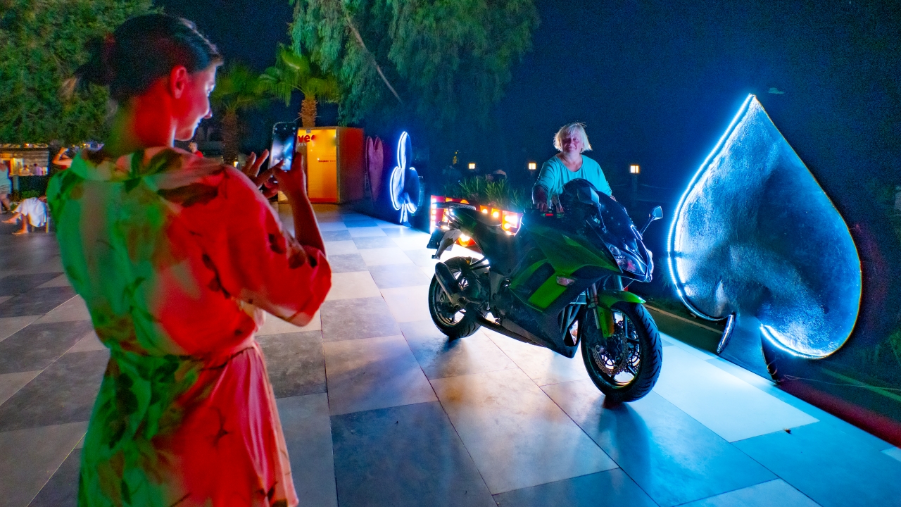 Bu küçük ışık ve ses gösterisinin ardından motorlarını ayrılan bölüme çeken motosikletçiler bir taraftan sohbet edip eğlenirken, motoseverler de farklı renk ve modeldeki motosikletleri inceleme ve fotoğraf çektirme fırsatı buluyor.