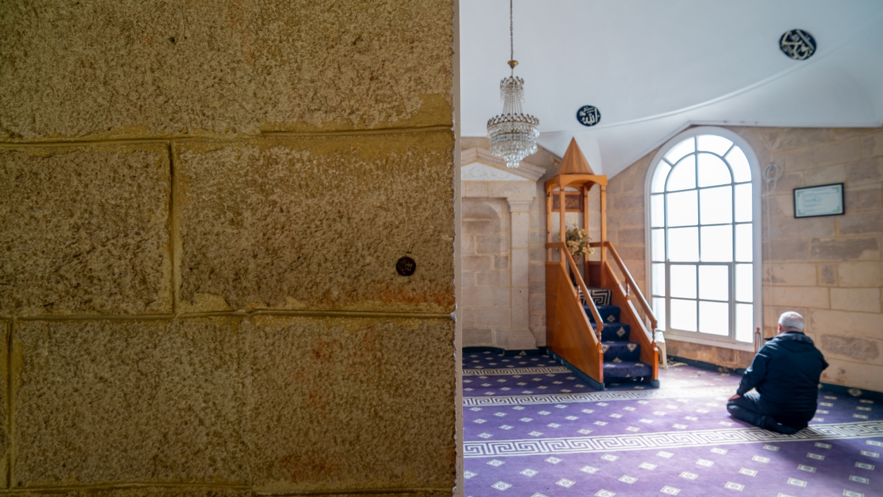 Alt katında bir su kaynağı bulunan caminin ibadet alanı 23 metrekare.