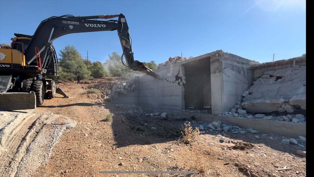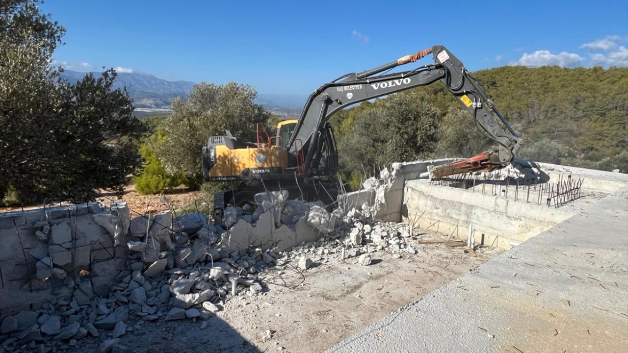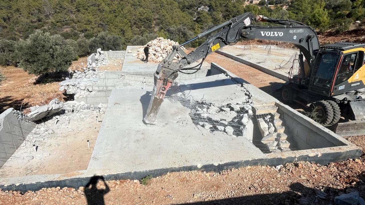 Kaş Belediyesi İmar ve Şehircilik Müdürlüğü, Gelemiş Mahallesi Mercimecik mevkisindeki birinci derece sit alanı olan hazine arazisinde, izinsiz olarak havuzlu 4 villa inşaatının sürdüğünü belirledi.