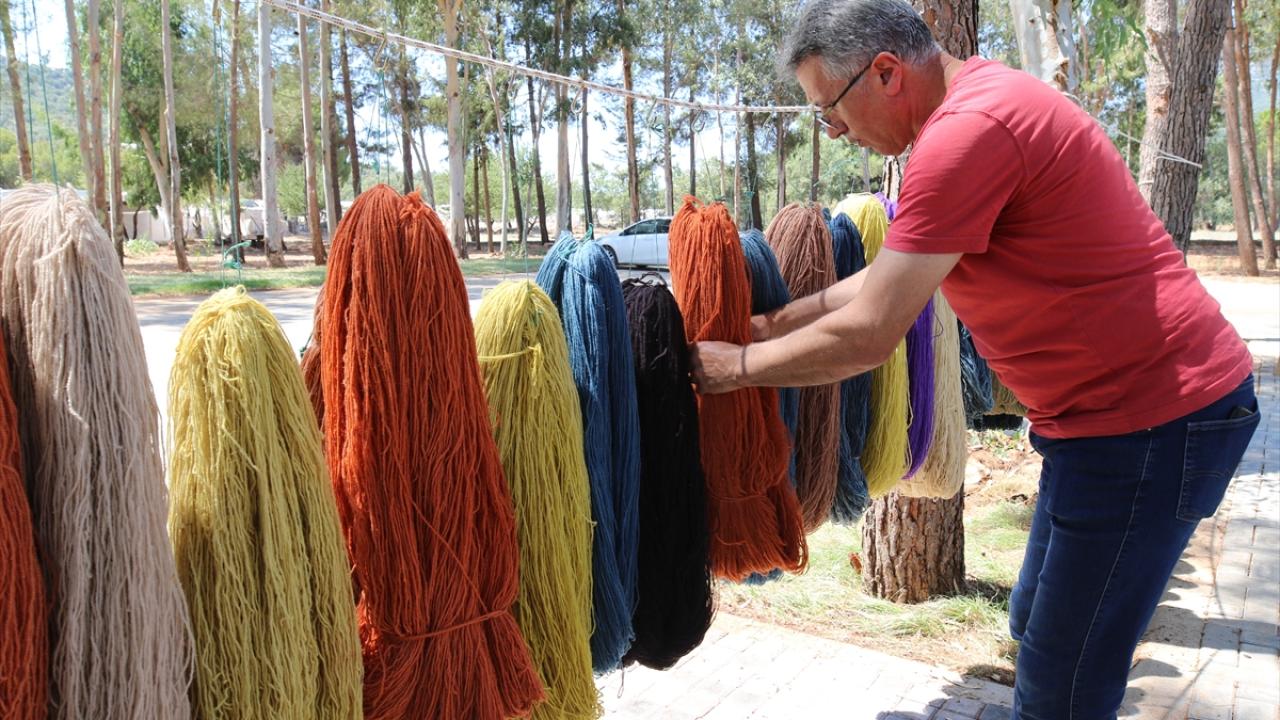 Koyundan kırkılan yün (yapağı) yıkanarak, güneşte kurutuluyor. Ayrıştırılan bu yün, kirmende (pamuk eğirmeye yarayan, tahtadan yapılmış bir tür iğ) eğrilerek, iplik haline getiriliyor. Elde edilen ip yumakları, kazanlarda boyanıyor. Boyama işlemi sırasında doğal bitkiler (çörtük, nar kabuğu, soğan kabuğu, indigo, kök, cehri, ceviz, muhabbet çiçeği) kullanılıyor.