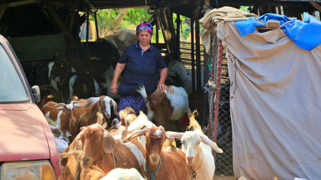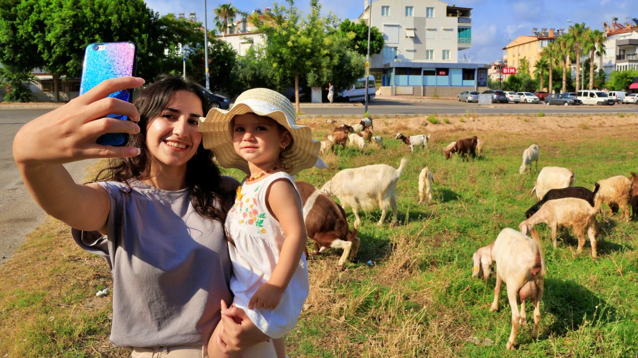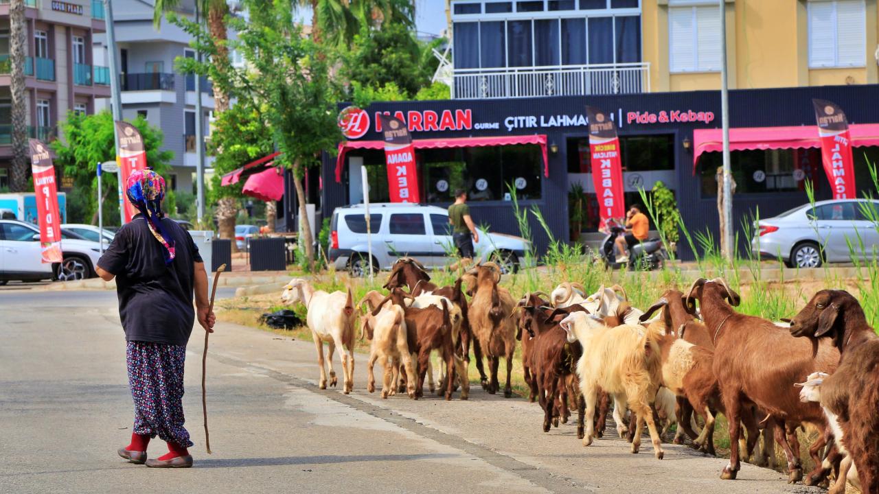 Her sabah ve akşam keçilerini otlatmak için evinden ayrılan Menşure Albayram, lüks binalar, araçların arasında hayvanlarıyla yakınındaki otlak alanlara gidiyor.