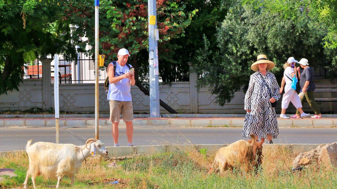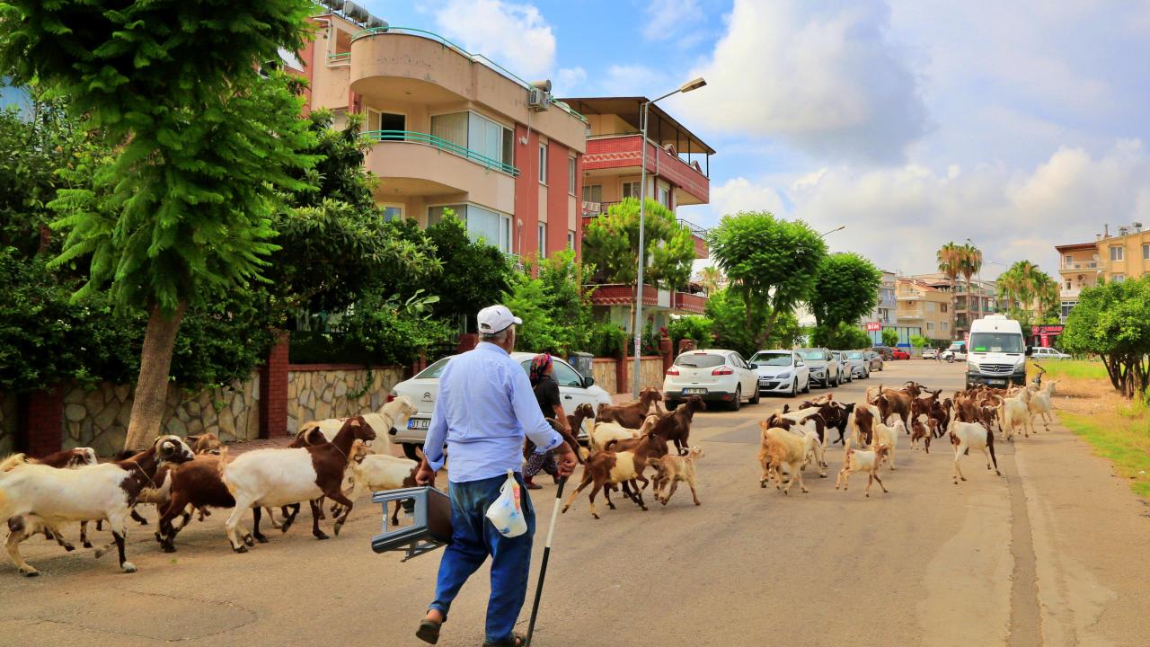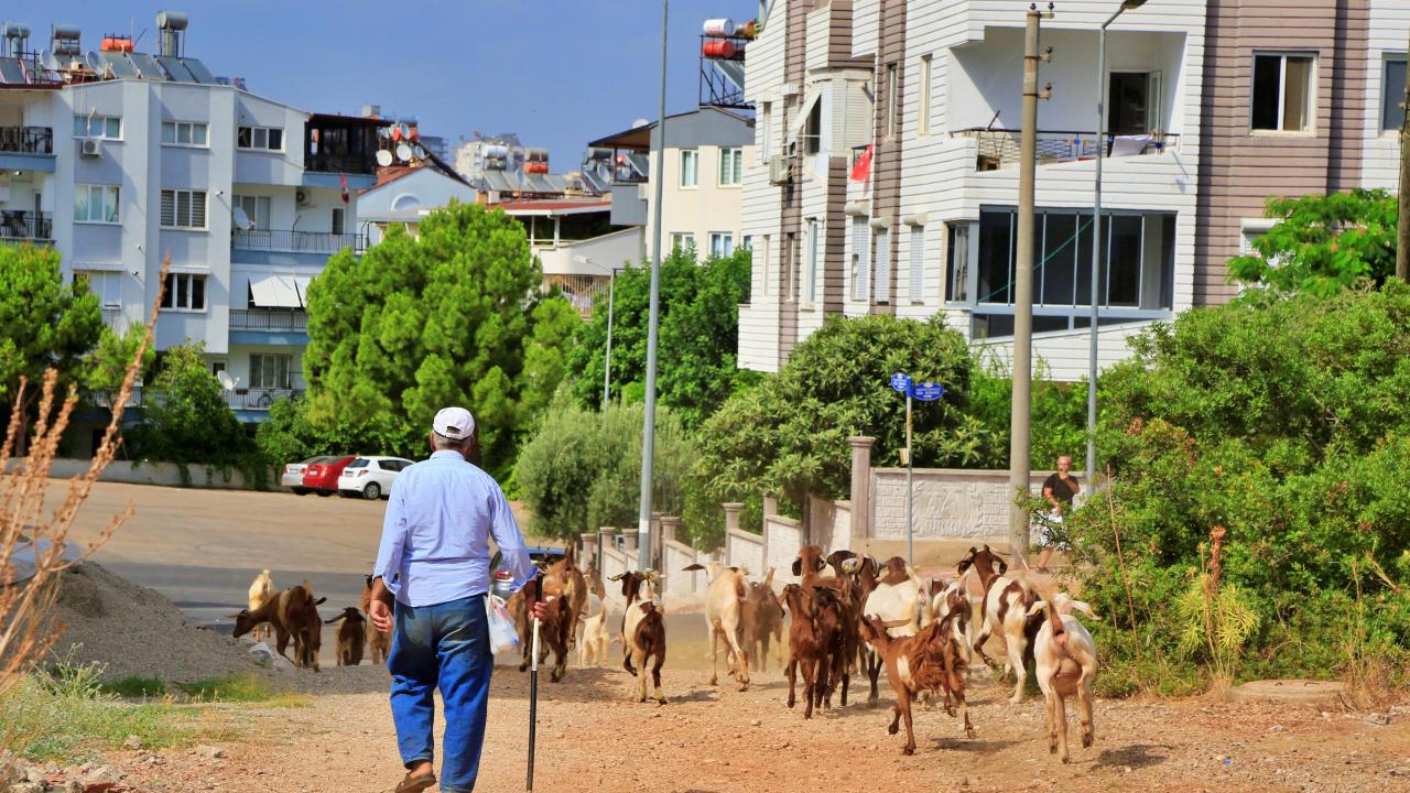 Villa, apartman ve otellerin arasında çobanlık yapıyor